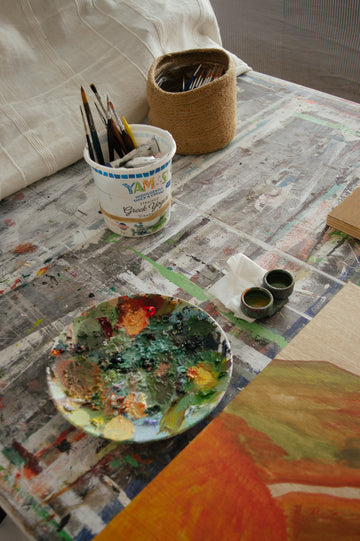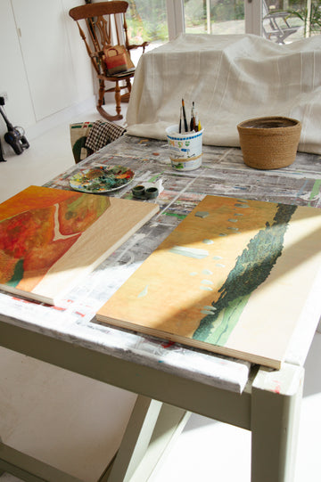 Meredith Owen 'Two Suns' Original Oil Painting on Ply Framed