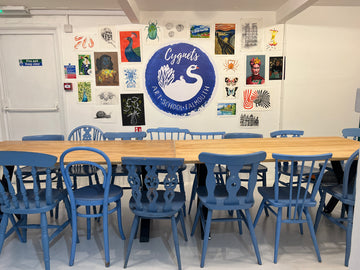 Having studied at Central Saint Martins and Kingston Art School respectively, we lived on a boat in Kingston for ten years, and founded the Nationwide Cygnets Art School in 2015, before moving to Cornwall.