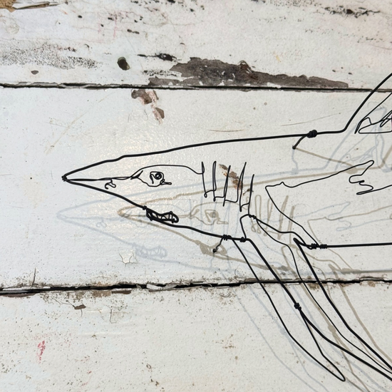 He uses several grades of iron wire to transform his fluid single line drawings into a tangible version. He likes to pair these with found and reclaimed timber, often using pieces from the actual vessel. The wire drawings are destined to either stand still or come to life using cranks, levers and threads of nylon. The mechanisms themselves add a level of intrigue and play that Ben himself gets so much joy from.'