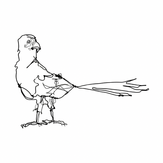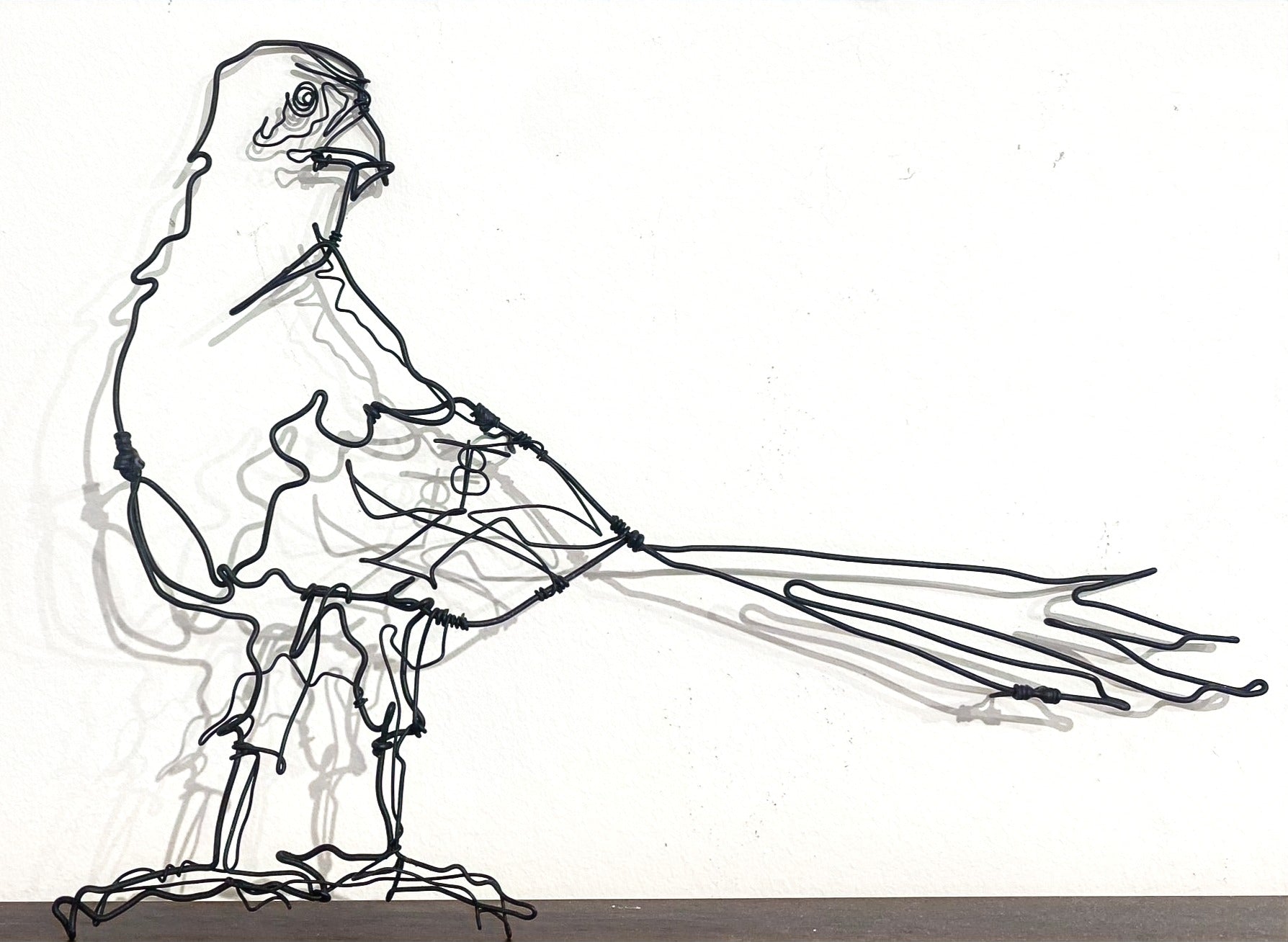 Ben Baker 'Magpie Looking Back' Wire Drawing