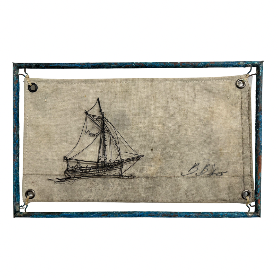 Ben Baker 'Ship' Wire Drawing on Canvas