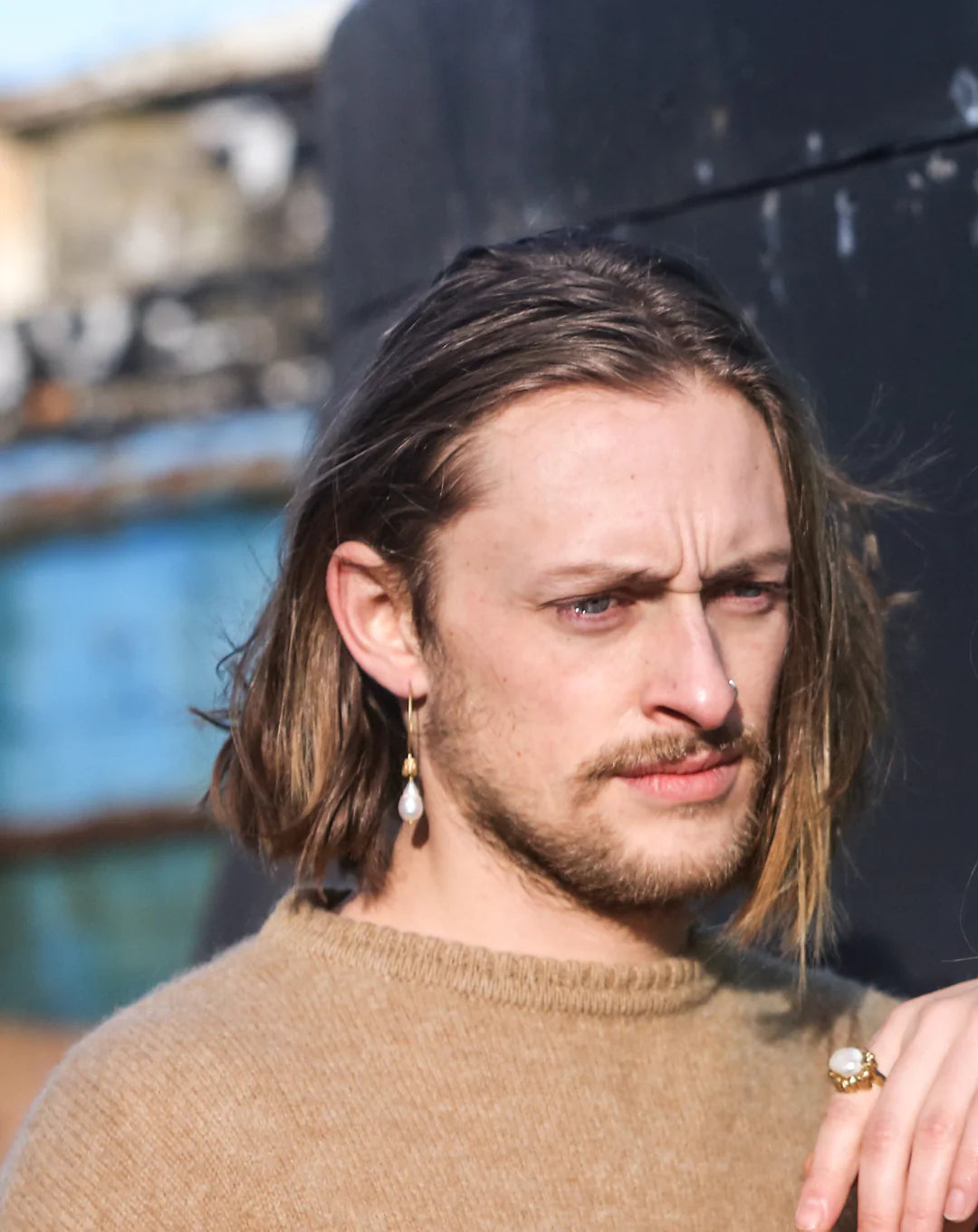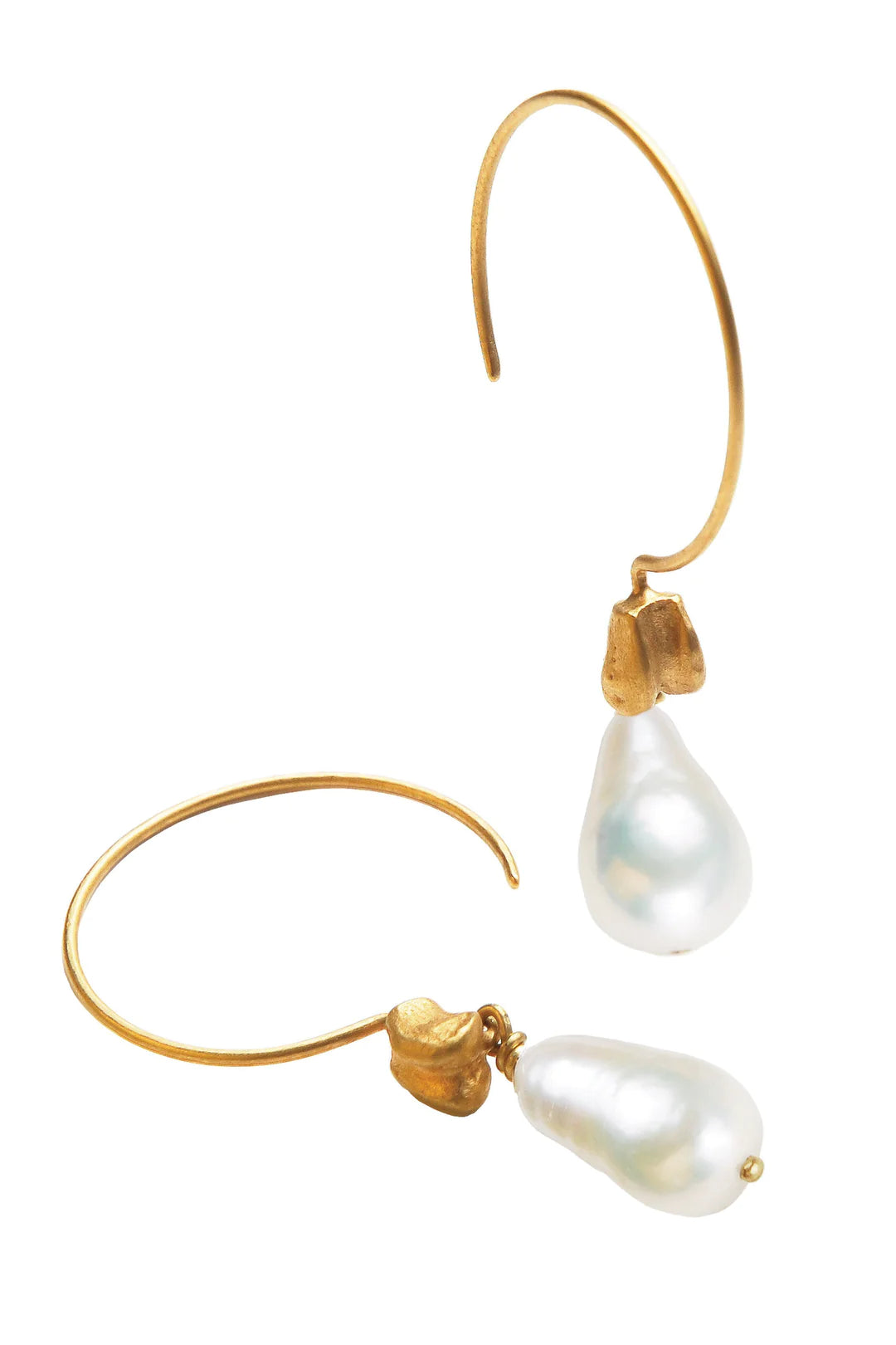 Magpie Bone & Baroque Pear Shaped Baroque Pearl Hook Earrings