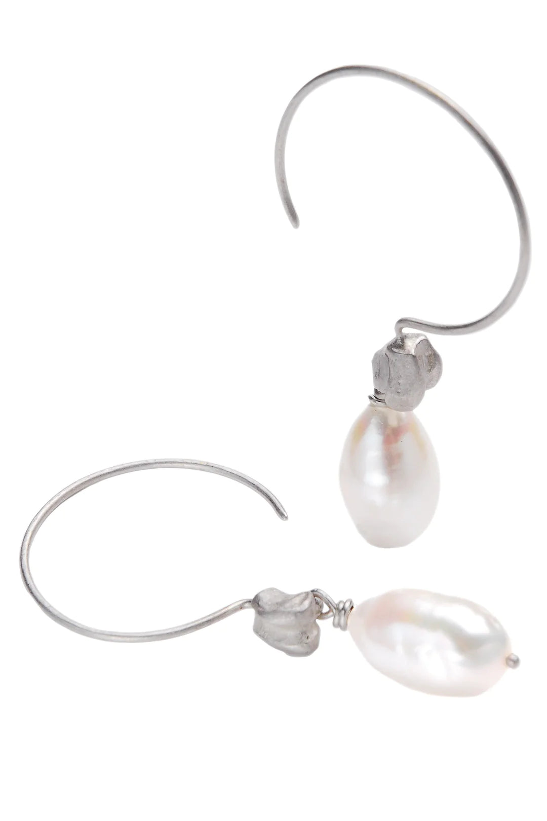 Magpie Bone & Pear Shaped Baroque Pearl Hook Earrings