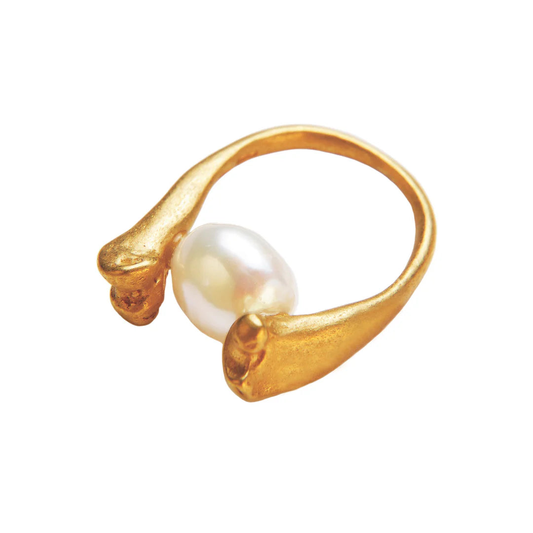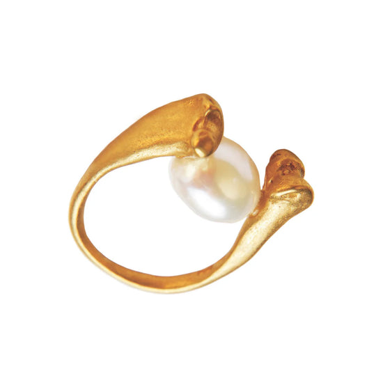 This Rings Size is partly made up by the size of the Pearls which are unique & vary. Because of this we give two ring sizes as a guide to what size our stock of these fall between. Also this Ring is not designed to be perfectly round. Fingers are not perfectly round either & it’s typical for rings to shape to your hands over time. These Rings go on sideways or upside down & then need to be turned so that the pearl sits on top.