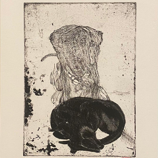 Using aquatint and etched mark-making, Clementine creates darker images that she then burnishes back to add lighter grey tones, highlights and more subtle tone changes; similar to mezzotint. Her plates go through many processes overlaying etching, burnishing, and open bite, which create the depth of mark her work is known for.