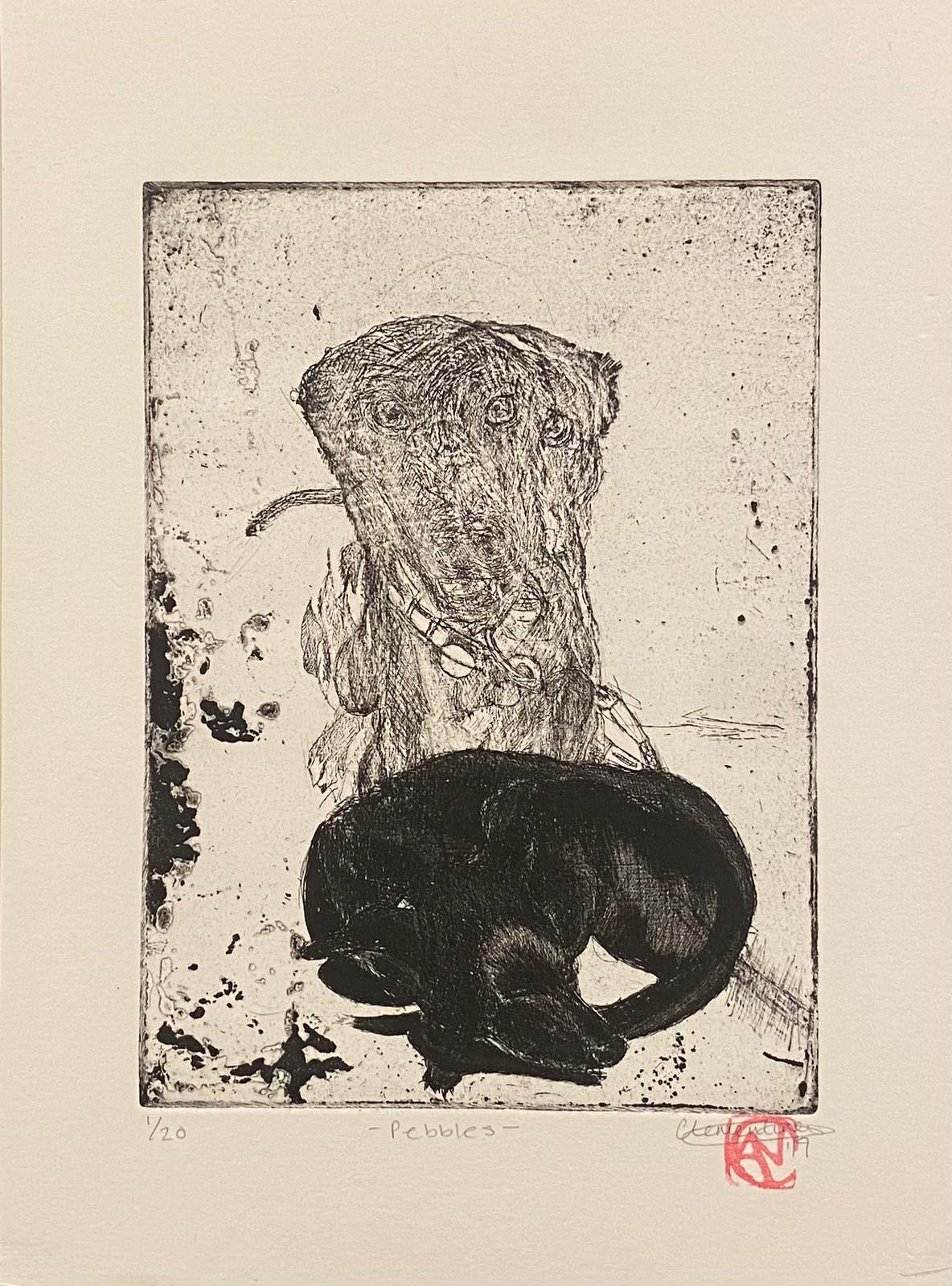 Original etching 'Pebbles' by printmaker Clementine Neild.