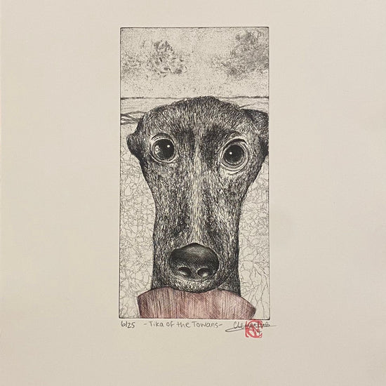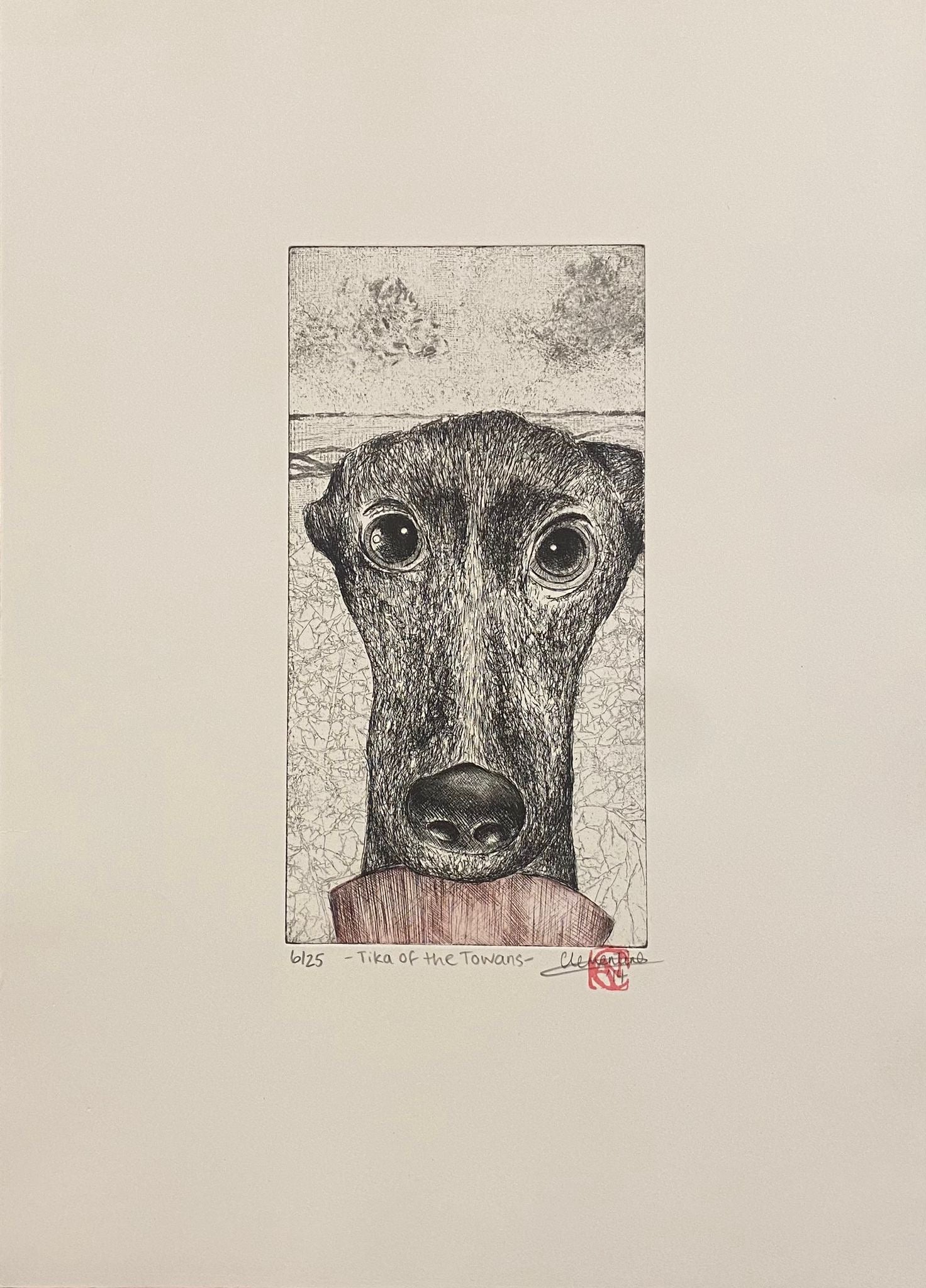 Original aquatint etching 'Tiga of the Towans' by printmaker Clementine Neild. 6/25