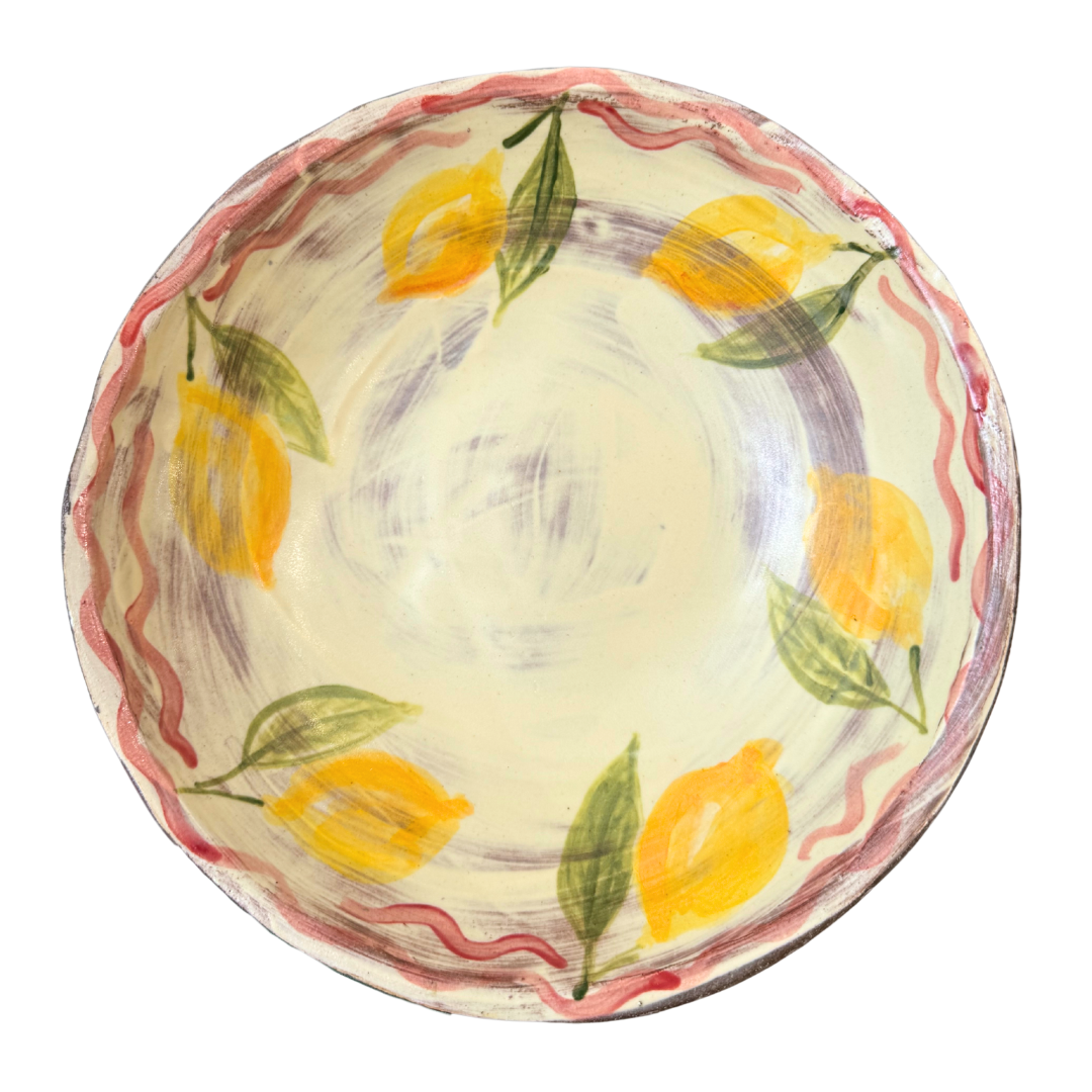 Beautiful handmade ceramic bowl with a lemon design by ceramist Eloise Rose.