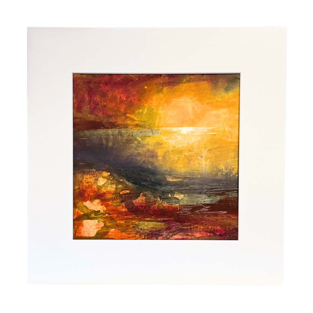 Original painting 'Golden Hour' by Cornish artist Fiona Cant. Mixed media on card. Mounted.