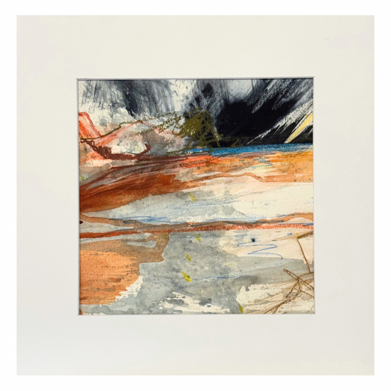 'I paint semi-abstract landscapes inspired by wild places, including the beautiful Cornish coastline where I am lucky enough to live. I walk every day with my dog, frequently on the beaches and coast path, (and even been known to get up close and personal with rockpools by cold water dipping.) Sometimes I sketch, but more often I take many many photos of the little details that catch my eye. It is not just big spaces of ocean and sky that I connect with but patterns made in the sand by the withdrawing tide, or the folds and crevices within a rock or pebble. Being in nature brings me into the present whether that is battling against a strong wind on a headland or basking in the sun in a sheltered cove. It is these feelings of freedom, serenity and aliveness I wish to convey in my paintings. It is an ongoing journey of discovery.'