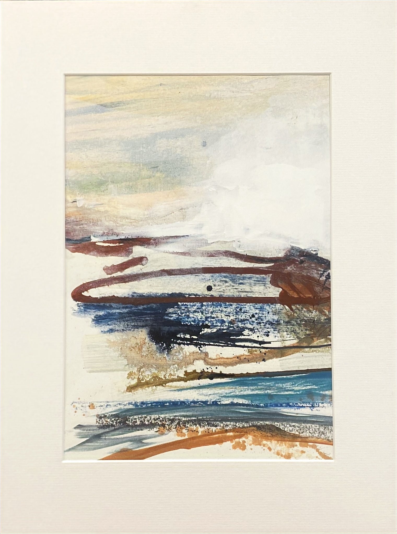 Original painting 'Beachcombing II' by Cornish artist Fiona Cant. Mixed media on paper. Mounted.