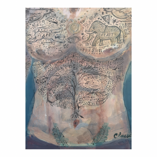 When Gary Ray Smith moved into a neighbouring studio at Krowji, it didn’t take long for him and Chloe Woods to realise they shared a similar sense of humour, taste in music, and love of storytelling. A chat about AI and Gary’s “scale of handsomeness” experiments for his Claude paintings sparked an idea — Chloe offered to see what Claude might look like as a real person. The following week she brought in the image that became October Wood, which Gary started painting straight away and sold to a collector in the US before it was even finished. Since then, the pair have been creating together, blending Chloe’s layered backgrounds and technical precision with Gary’s bold brushwork and wit. Their shared enthusiasm and laughter continue to shape Claude’s evolving world.