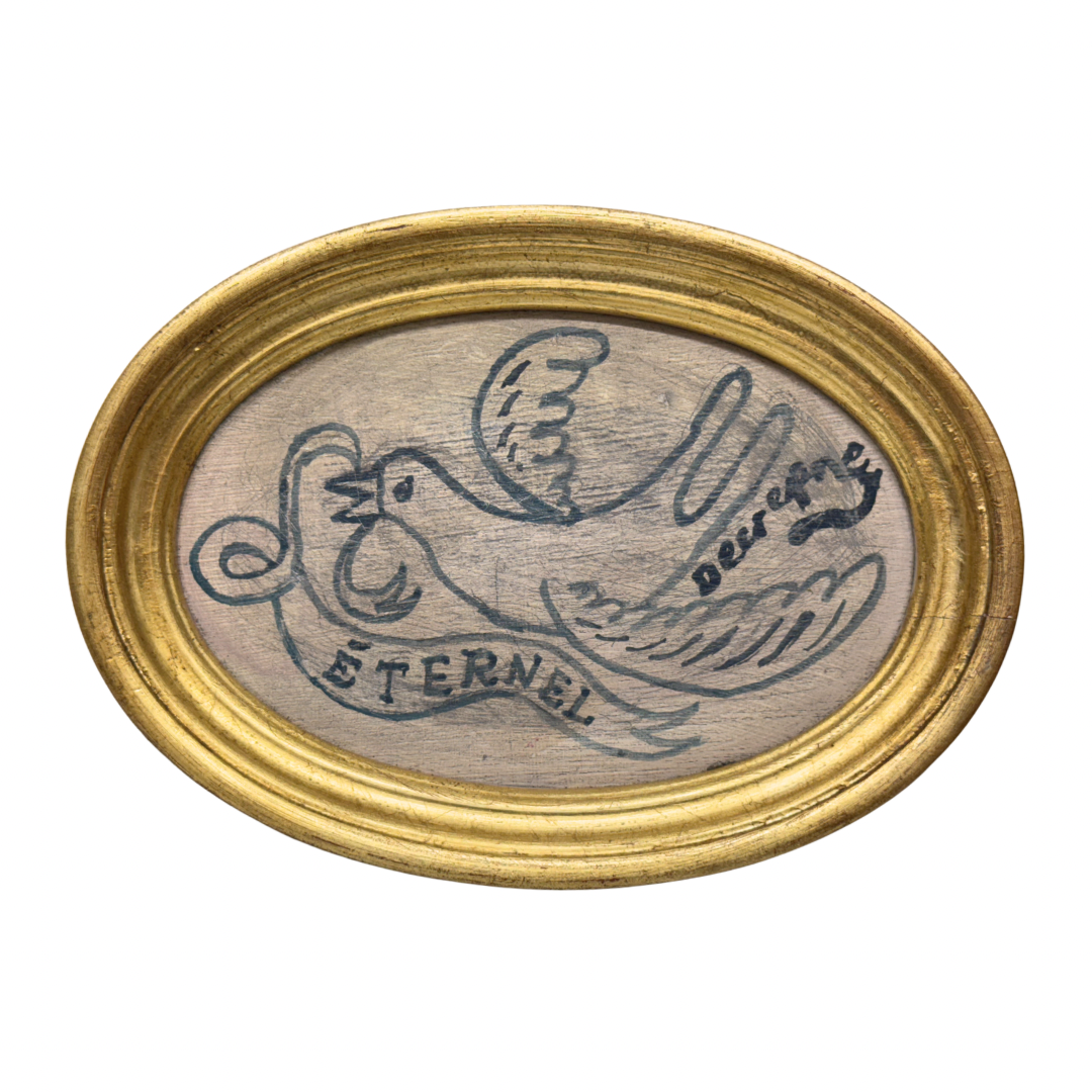 Part of a brand new series of paintings by Gary! After his incredibly successful Claude Decrepney series, these smaller paintings figure tattoo designs that you may have seen painted on Claude’s body in previous artworks.