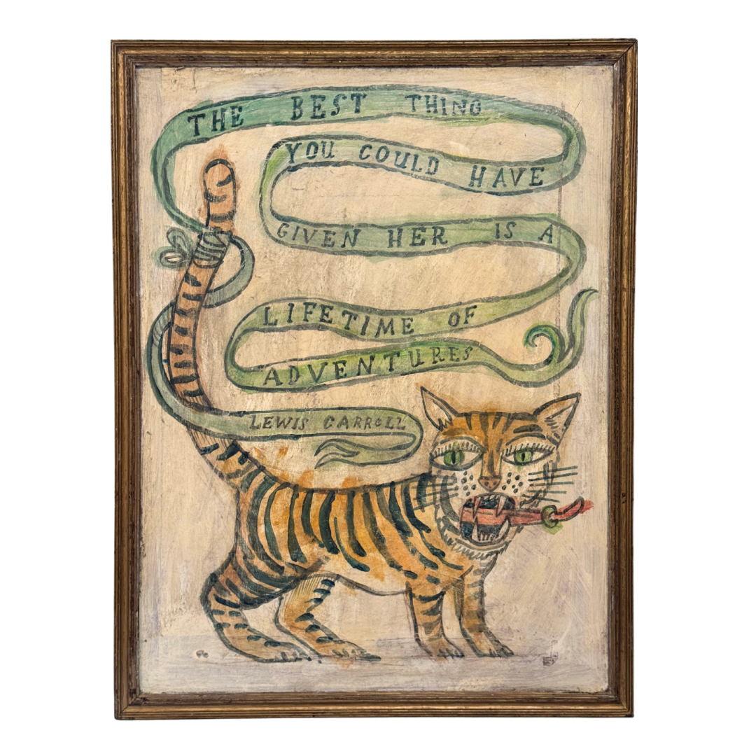 Much of Gary's work addresses themes of grief and loss, yet his creations, whether painted or knitted, are typically positive, joyous, and celebratory. Angels frequently appear in his work, symbolizing either the process of coping with loss or the creation of a fantastical world for his angelic grandson, Florian. His current portfolio is a diverse blend of painting, knitted textiles, children's book illustration, hand-painted signs, and illustrations for businesses and products. Gary finds that these various projects inspire one another, and his background as a graphic designer influences his paintings, incorporating elements of hand lettering, typography, fairground, and tattoo art. He also has a deep appreciation for "kidlit" art and pop art.