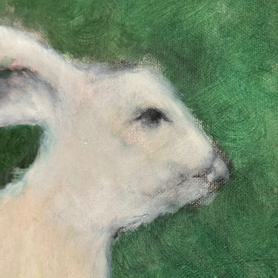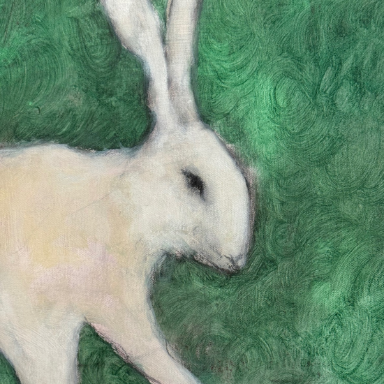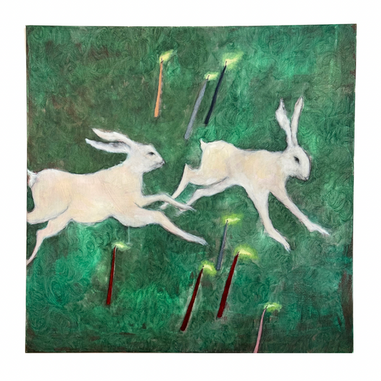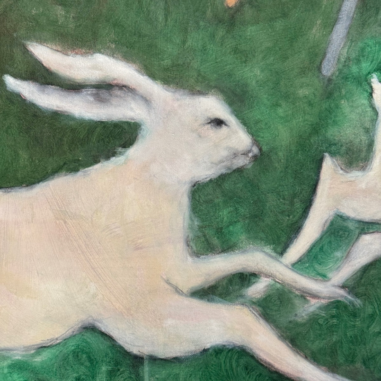 Georgia Parkin-Jones original oil painting ‘Harpy Hares’ on canvas