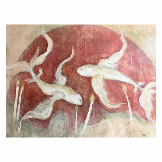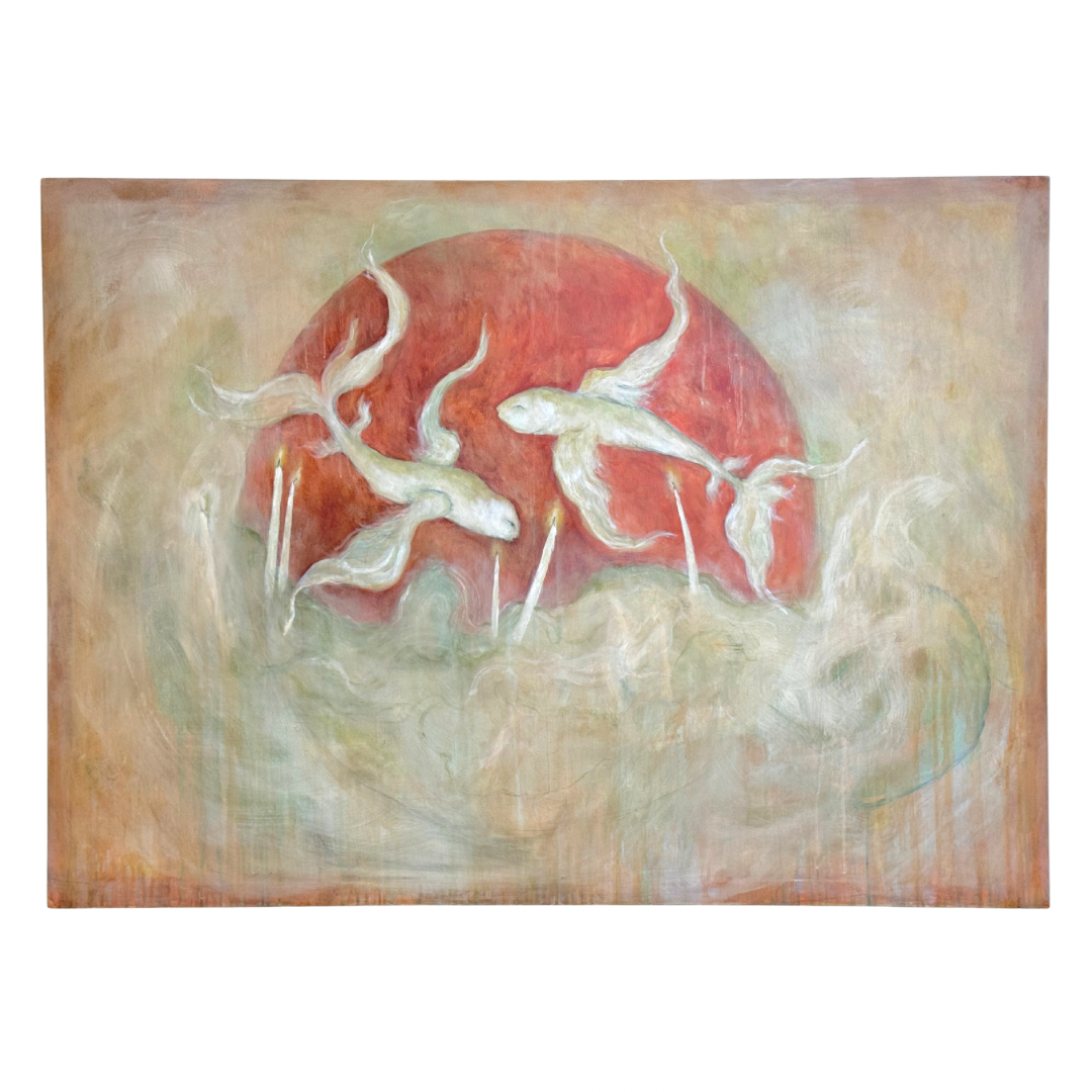 Georgia Parkin-Jones original oil painting ‘Blood Moon Lucky Fish’ on canvas.