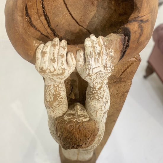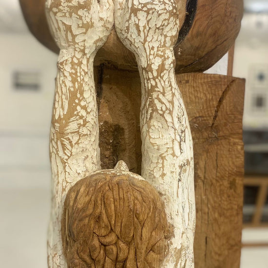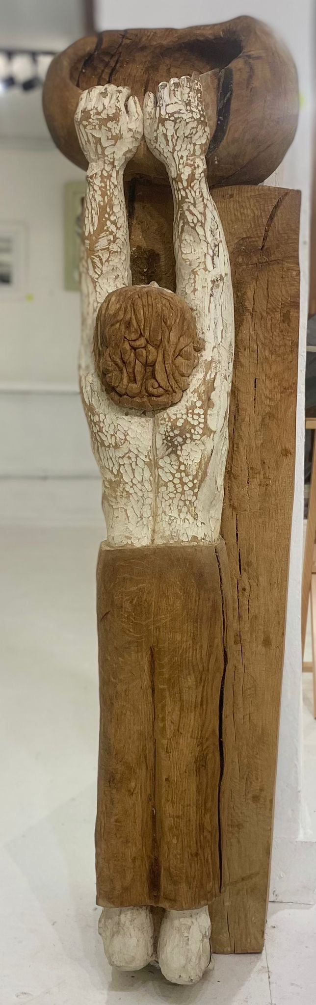 Amazing hand-carved wood sculpture by Cornish artist Ivan Blight-Anderson, titled A Child's Reach.