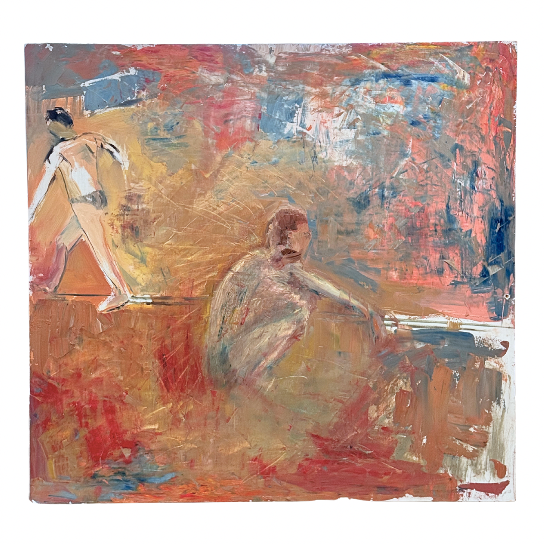 Original painting ‘The Swimmers’ by Falmouth based artist Jacqui Orly Ammon. Oil on board.