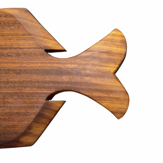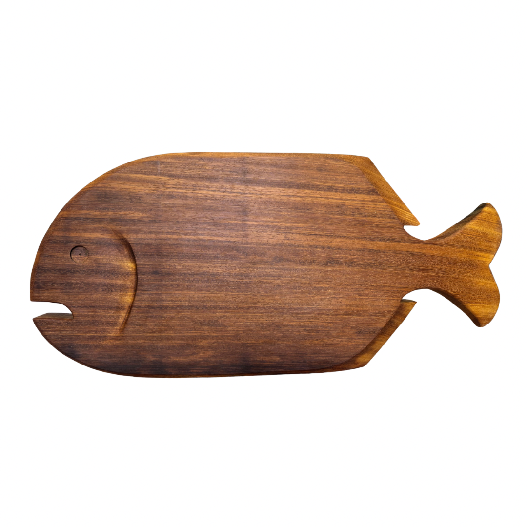 Beautiful large hand-carved fish-shaped chopping board by Cornwall-based artist James Heslip - exclusive to Sailors Jail. Please note as these boards are hand-made from natural wood, there will be some slight variations between them and each one is unique.