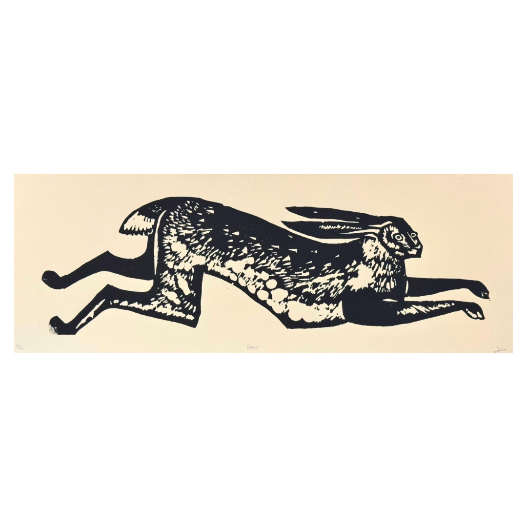 Limited edition woodblock print ‘HARE’ by artist James Heslip. Edition of 25