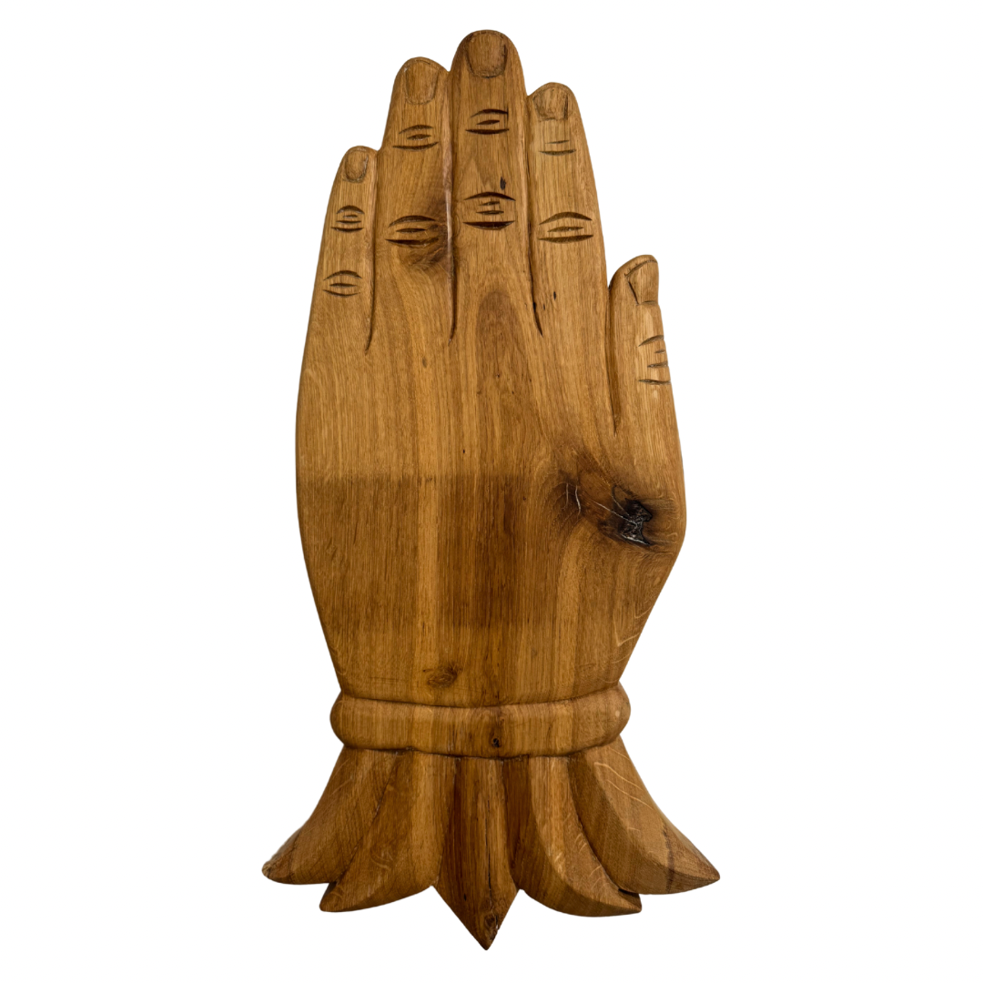 Original hand-carved oak sculpture, inspired by Milagros charms, by Cornish artist James Heslip. This piece has a wall fixture on the reverse in order to hang.