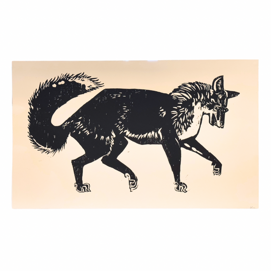 'FOX' original woodblock print by artist James Heslip.