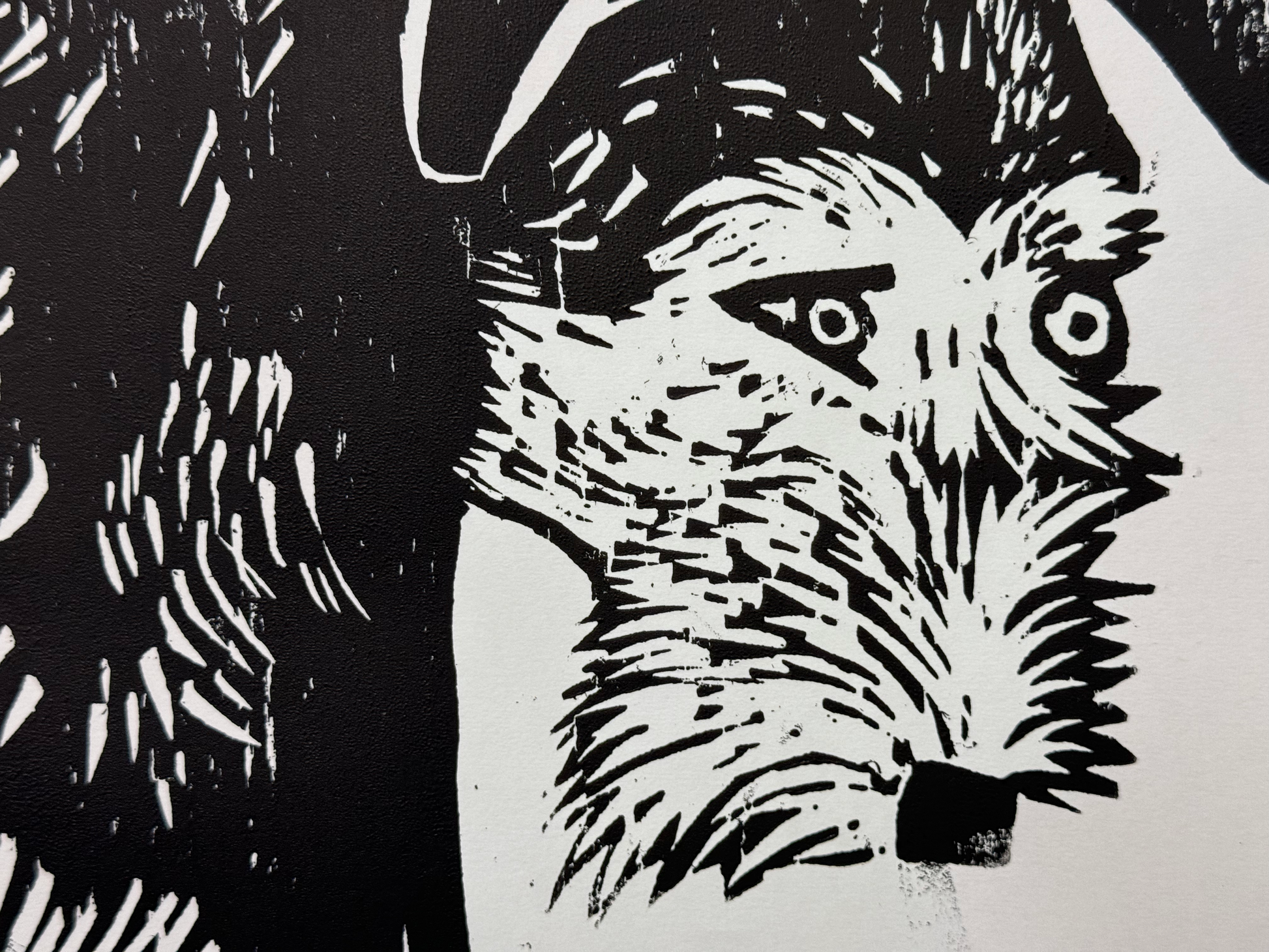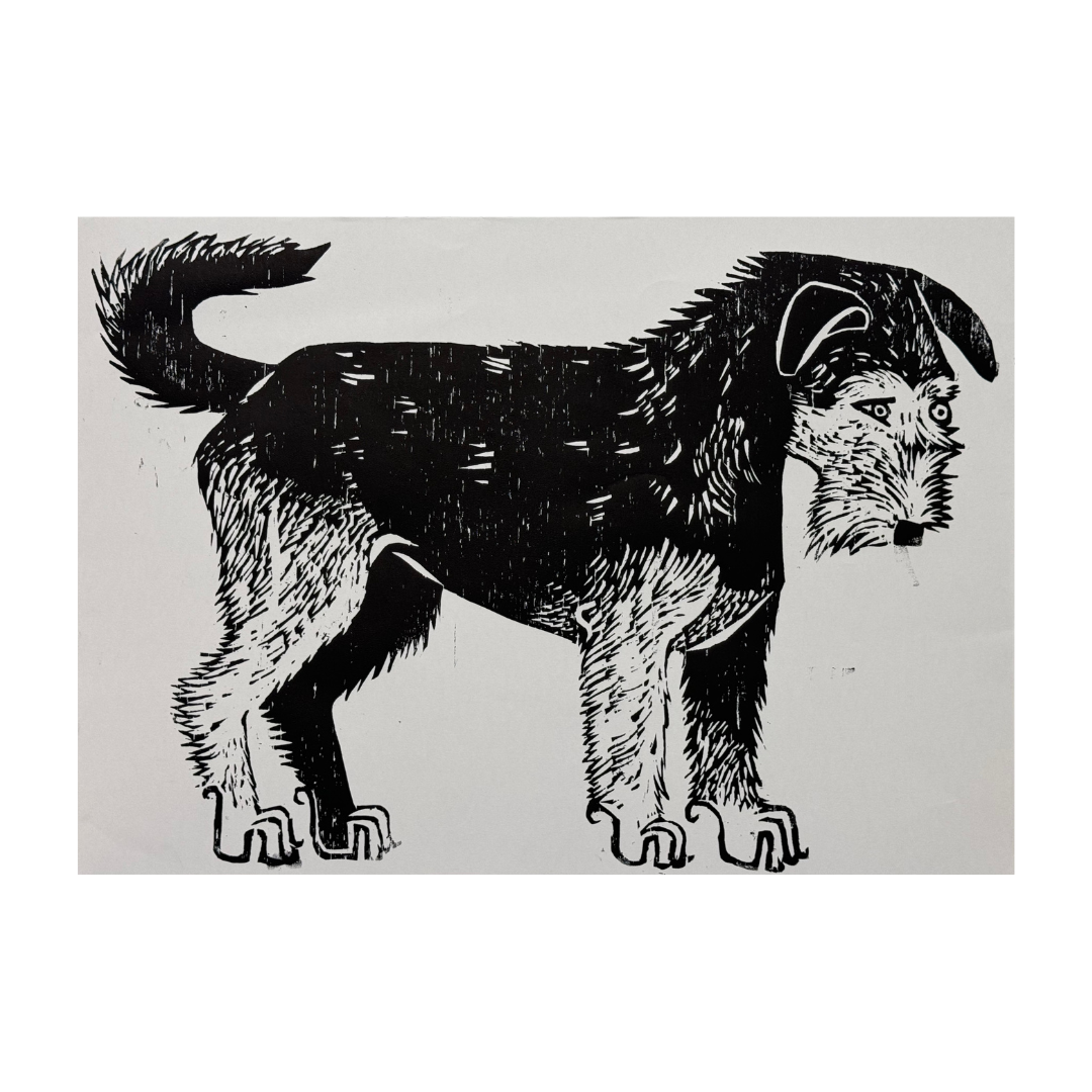 'Lakeland Terrier' original woodblock print by artist James Heslip.