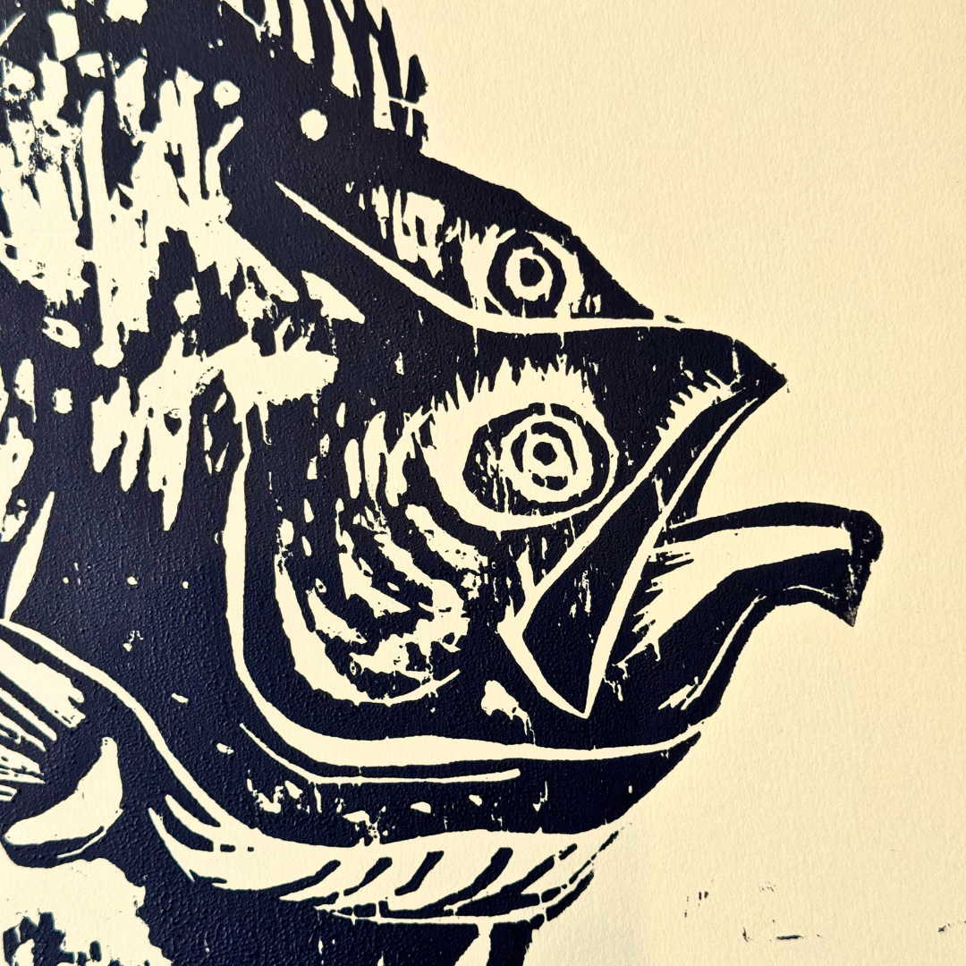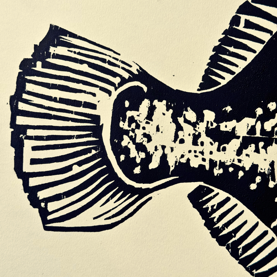 Hessy uses traditional woodblock carvings to create his incredible, intricate prints. As a keen fisherman and naturalist from an early age, his passion lies in animals, and it’s this which forms the core of his work.