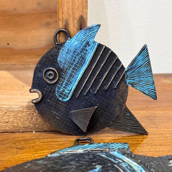 This beautiful bronze fish has a loop to be used as a wall hanging!