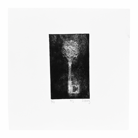 ‘Key’ limited run original mezzotint print by Falmouth Illustration graduate Sophie Duez.