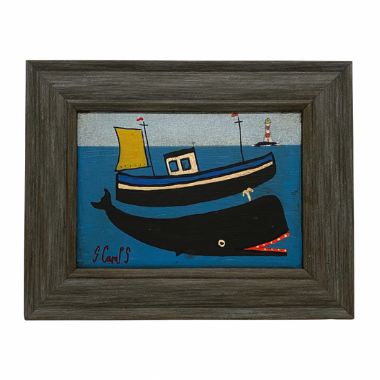 With an existing interest in antiques and painting, Camps began to experiment with imagery of whales: creating an array of entrancing scenes. With their beautiful muted colours, and each one carefully framed from Steve’s own collection, the result is a magical combination of traditional style, and unmistakable character.