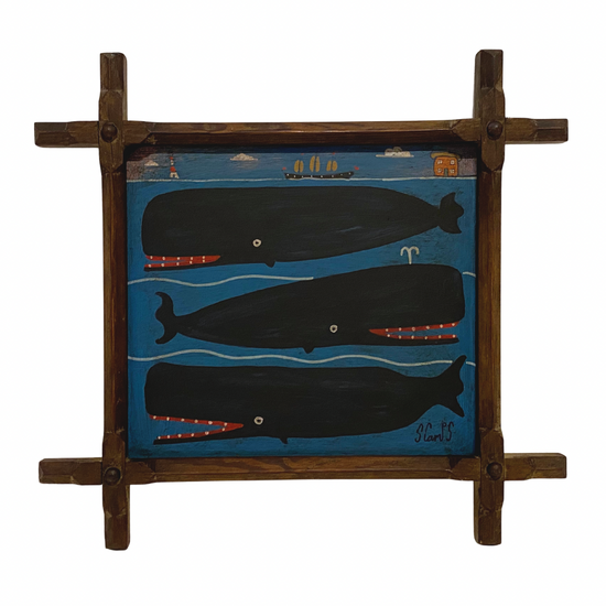 With an existing interest in antiques and painting, Camps began to experiment with imagery of whales: creating an array of entrancing scenes. With their beautiful muted colours, and each one carefully framed from Steve’s own collection, the result is a magical combination of traditional style, and unmistakable character.