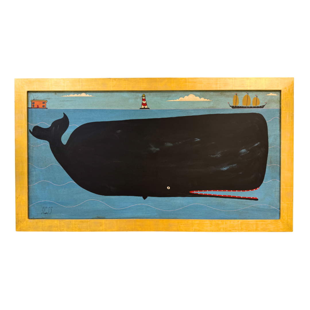 With an existing interest in antiques and painting, Camps began to experiment with imagery of whales: creating an array of entrancing scenes. With their beautiful muted colours, and each one carefully framed from Steve’s own collection, the result is a magical combination of traditional style, and unmistakable character.
