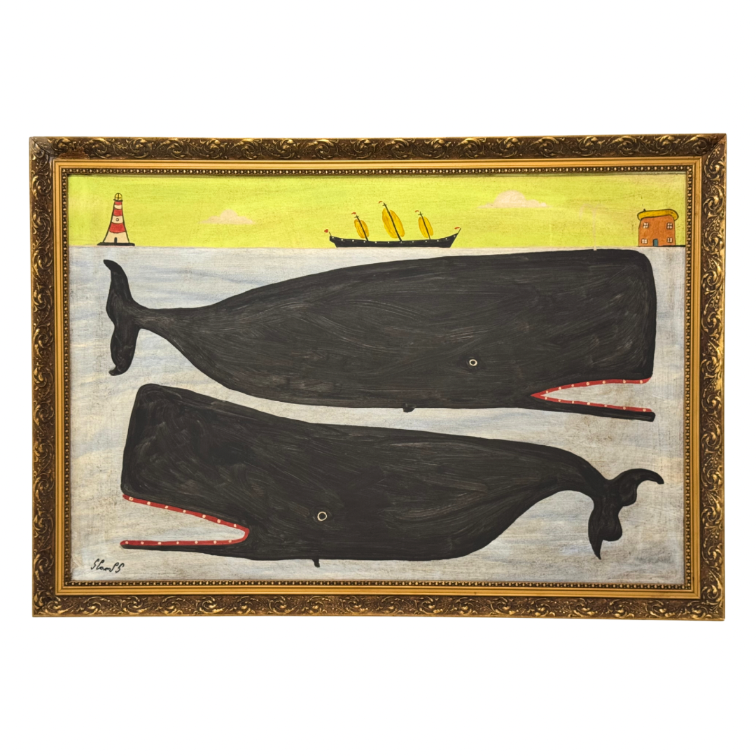 With an existing interest in antiques and painting, Camps began to experiment with imagery of whales: creating an array of entrancing scenes. With their beautiful muted colours, and each one carefully framed from Steve’s own collection, the result is a magical combination of traditional style, and unmistakable character.