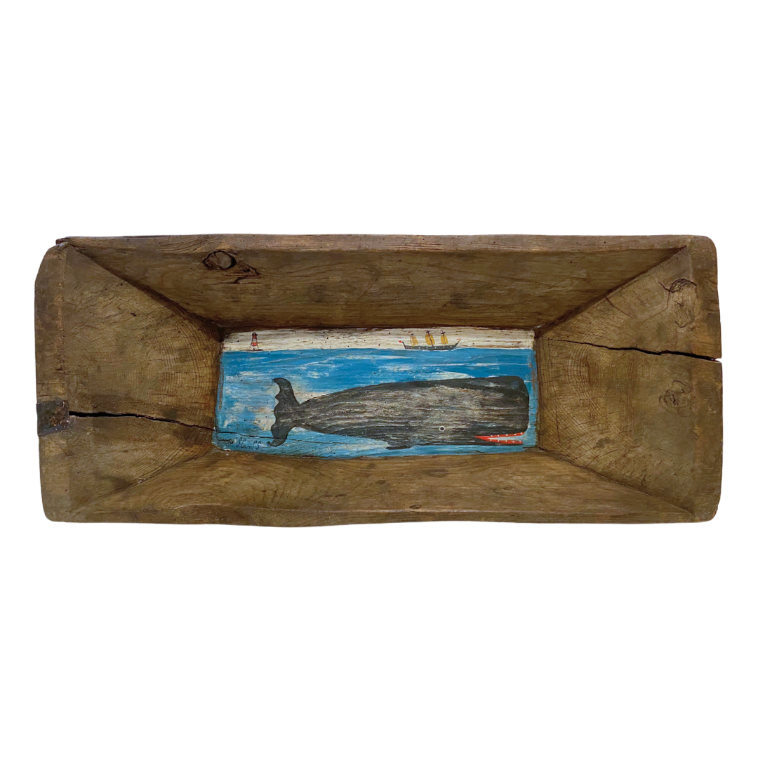 Original framed whale painting by iconic Cornish artist Steve Camps. Painted in an antique rectangle bowl!