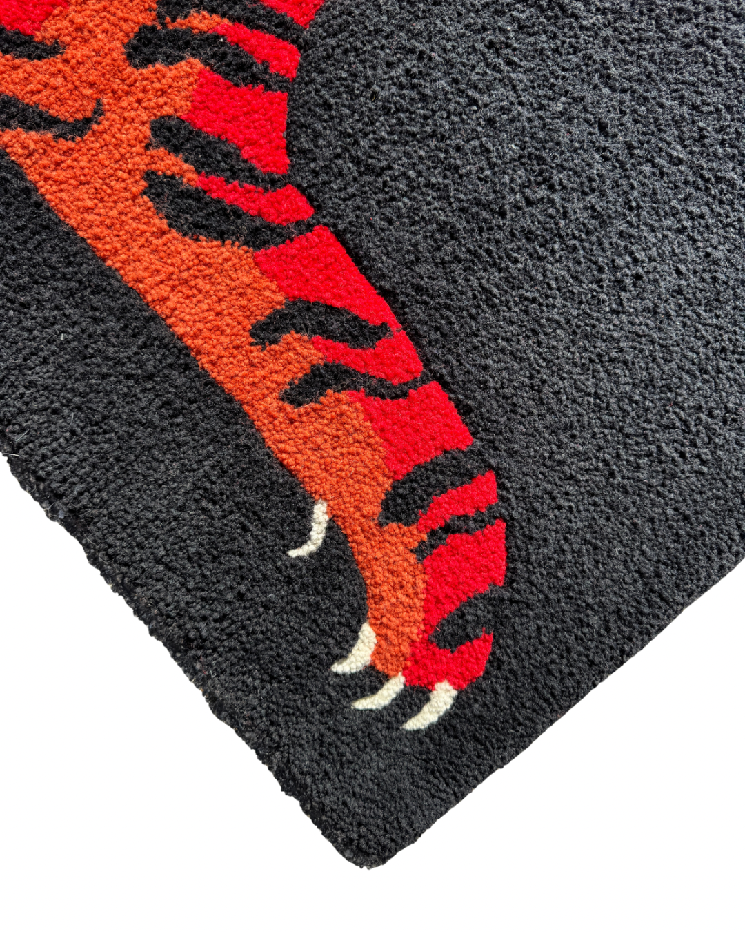 Beautiful rug of artist Tabby Booth’s iconic Tiger Rug design, handcrafted in Europe by Tik Tik Studio.