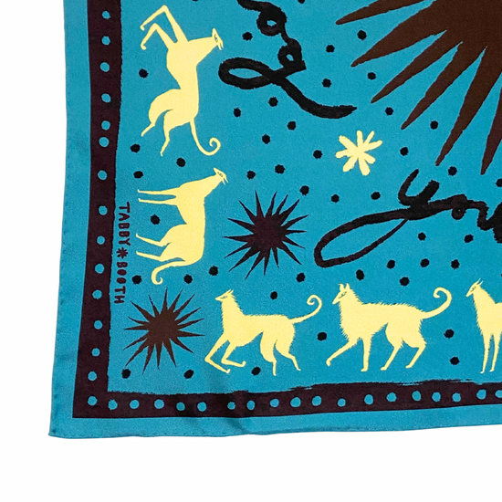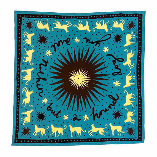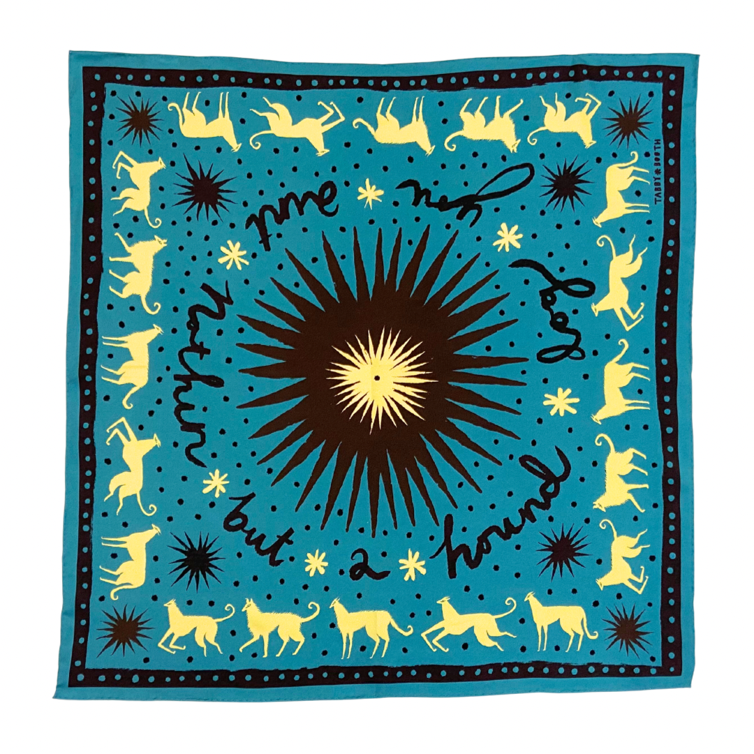 Beautiful luxury quality 100% silk scarf with hand rolled hems, printed with Tabby Booth's Hound Dog design.