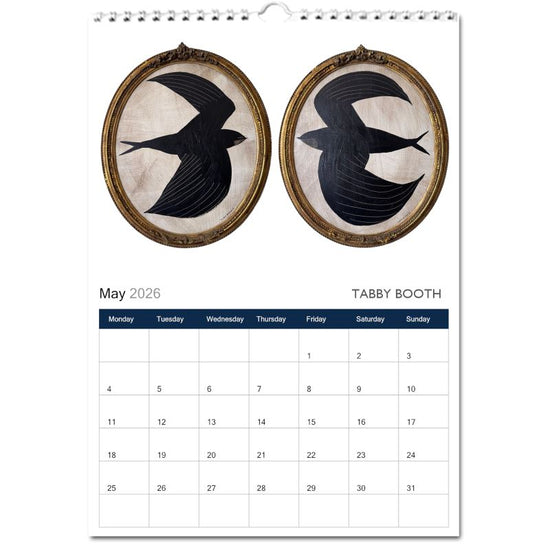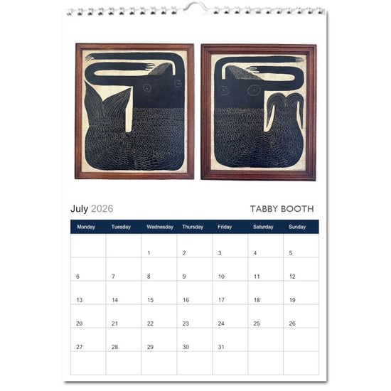 Beautiful ring-bound wall calendar featuring 12 of Tabby Booth's original framed paintings.Available in two sizes, both featuring a monthly view and large daily boxes.