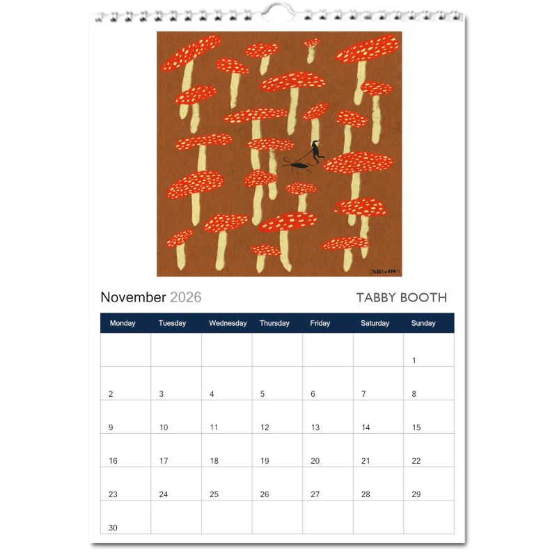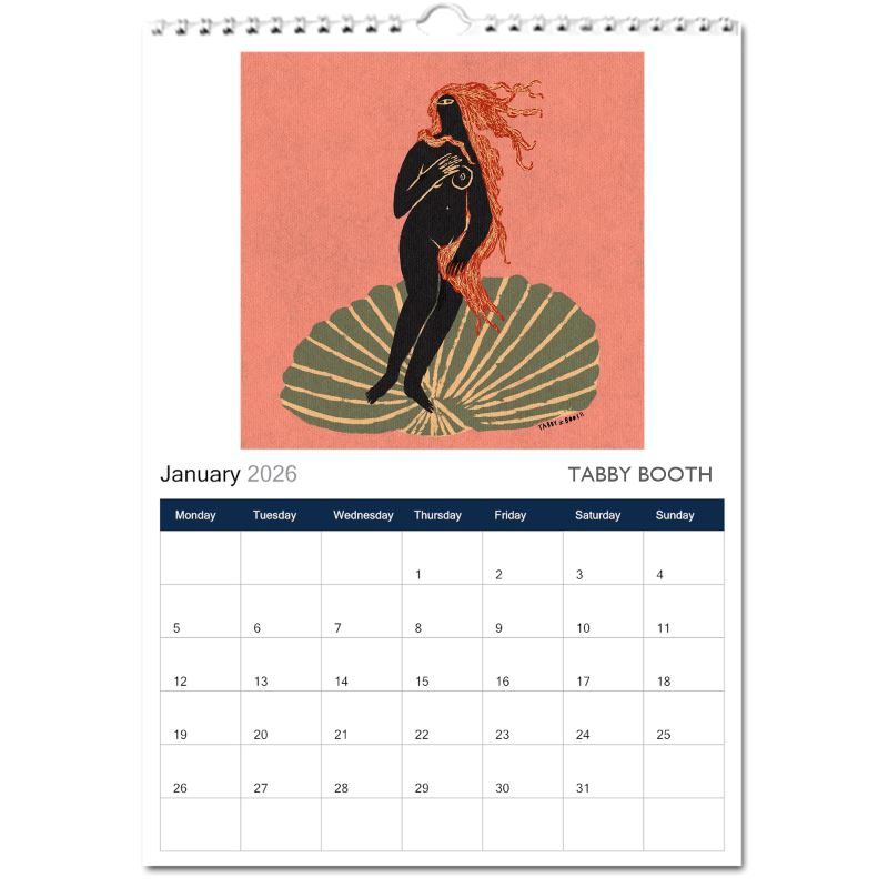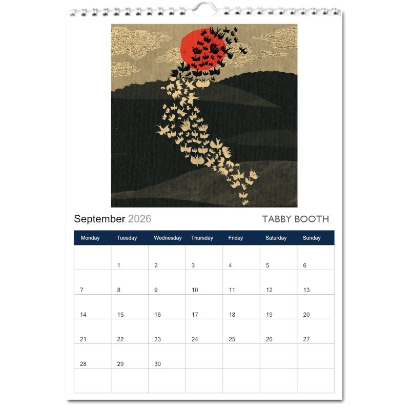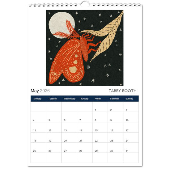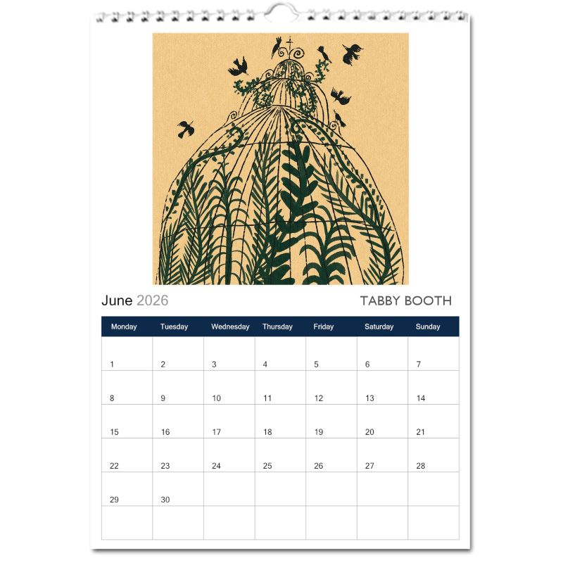 Beautiful ring-bound wall calendar featuring 12 of Tabby Booth's illustrations.Available in two sizes, both featuring a monthly view and large daily boxes.