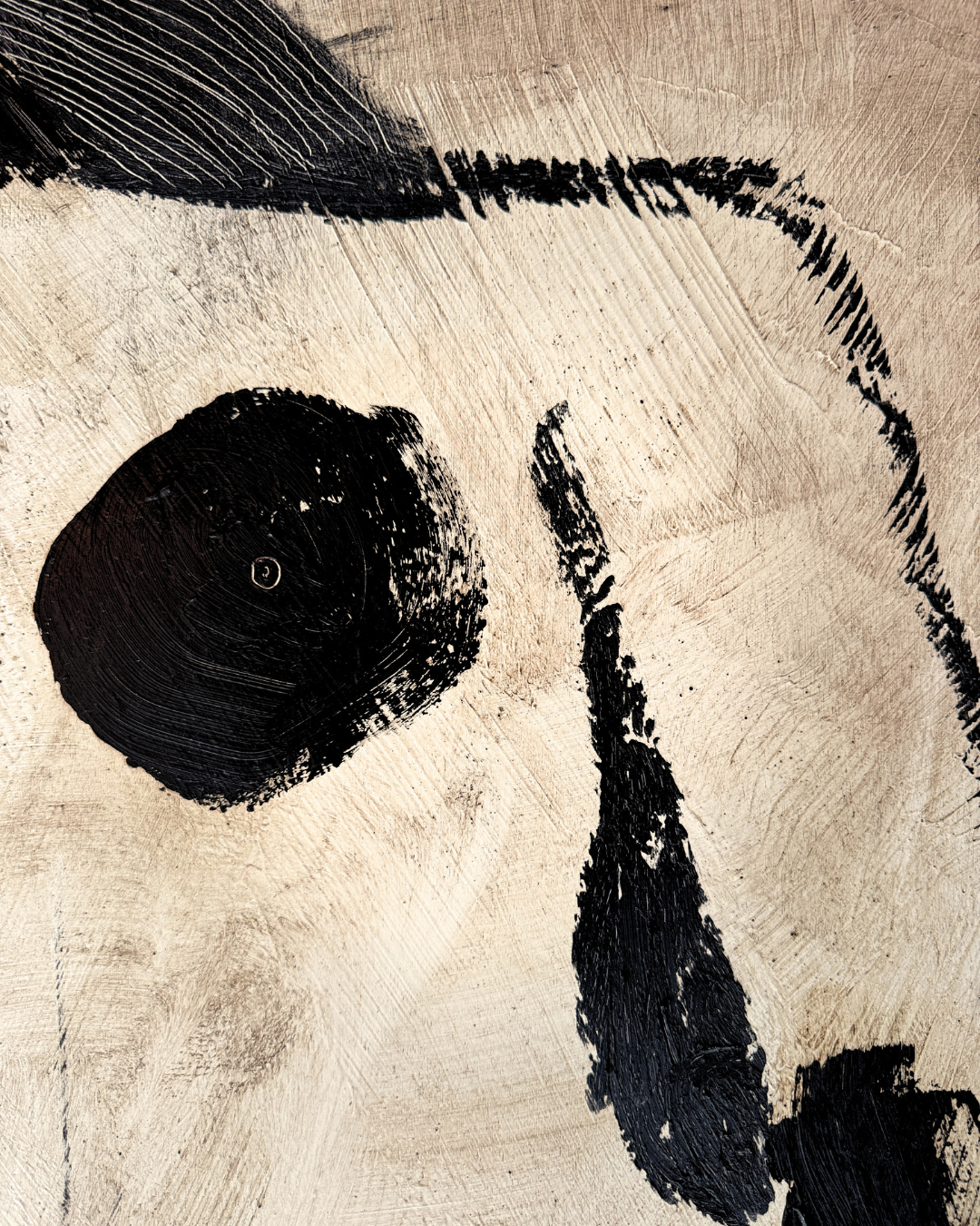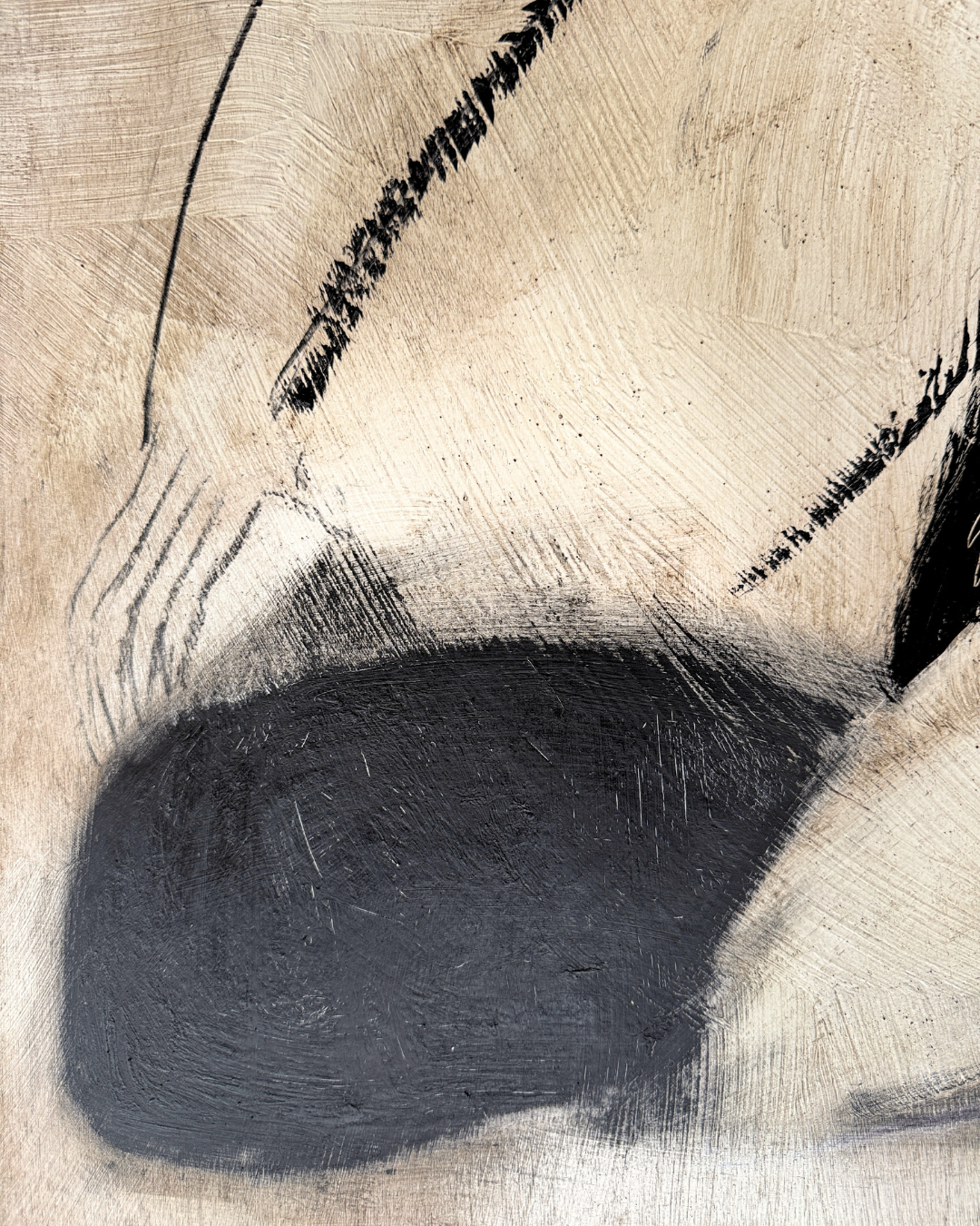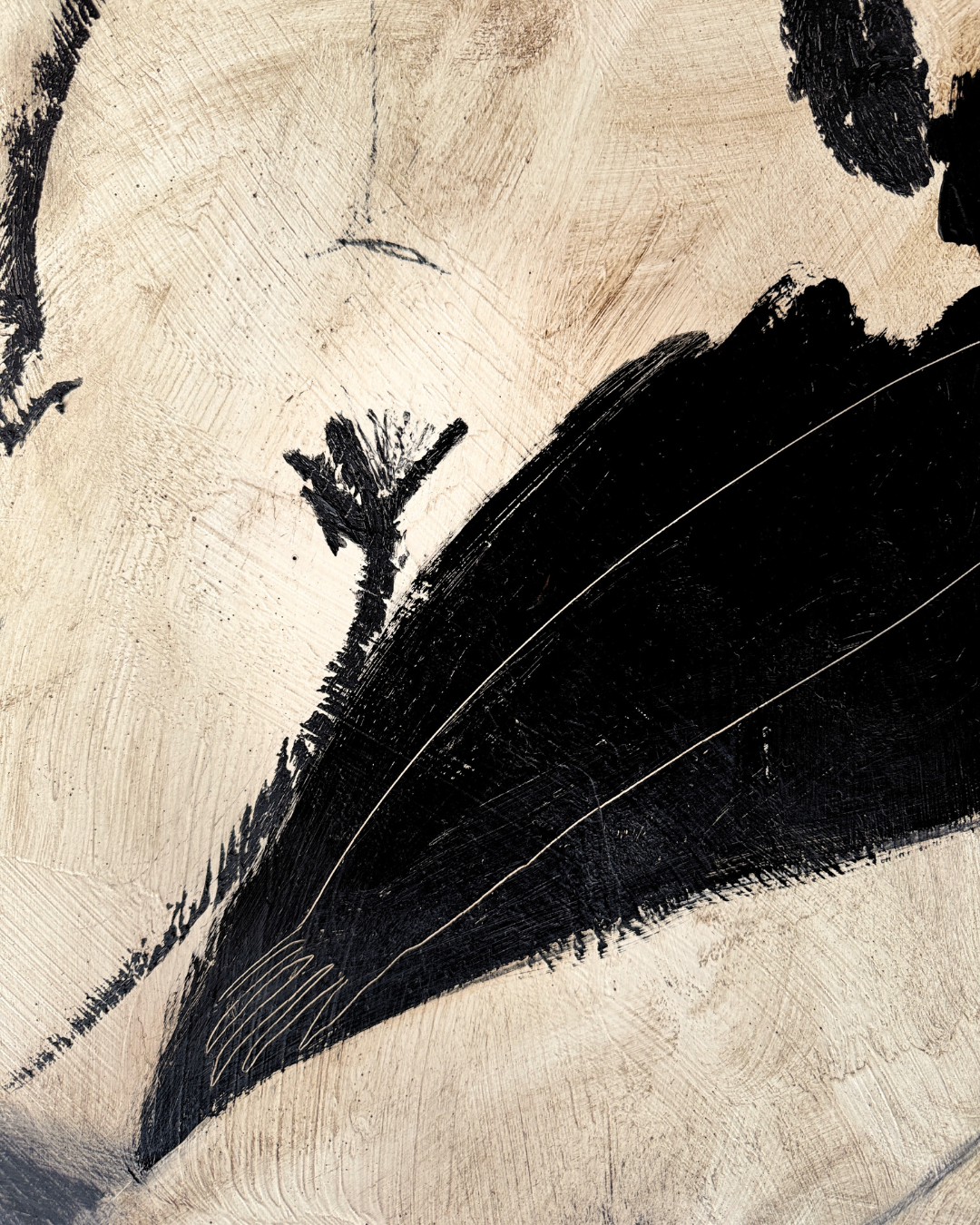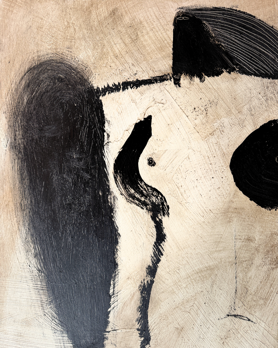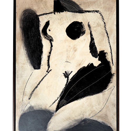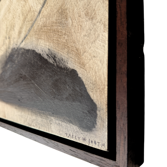 Medium: Charcoal, Oil Pastel, Acrylic, Sgraffito & Wax, on Cradled Wood Panel, in Warm Brown Wood Floating Frame