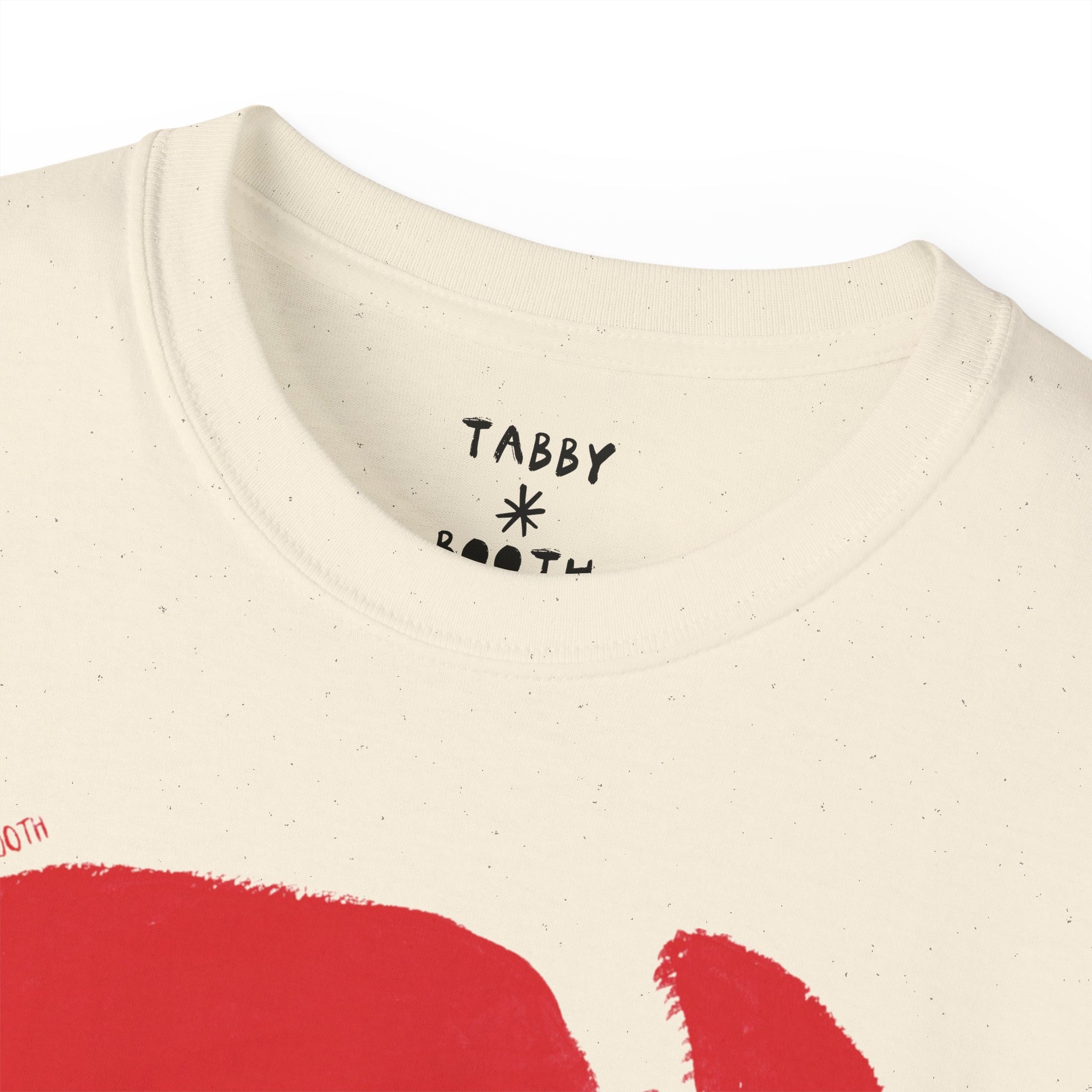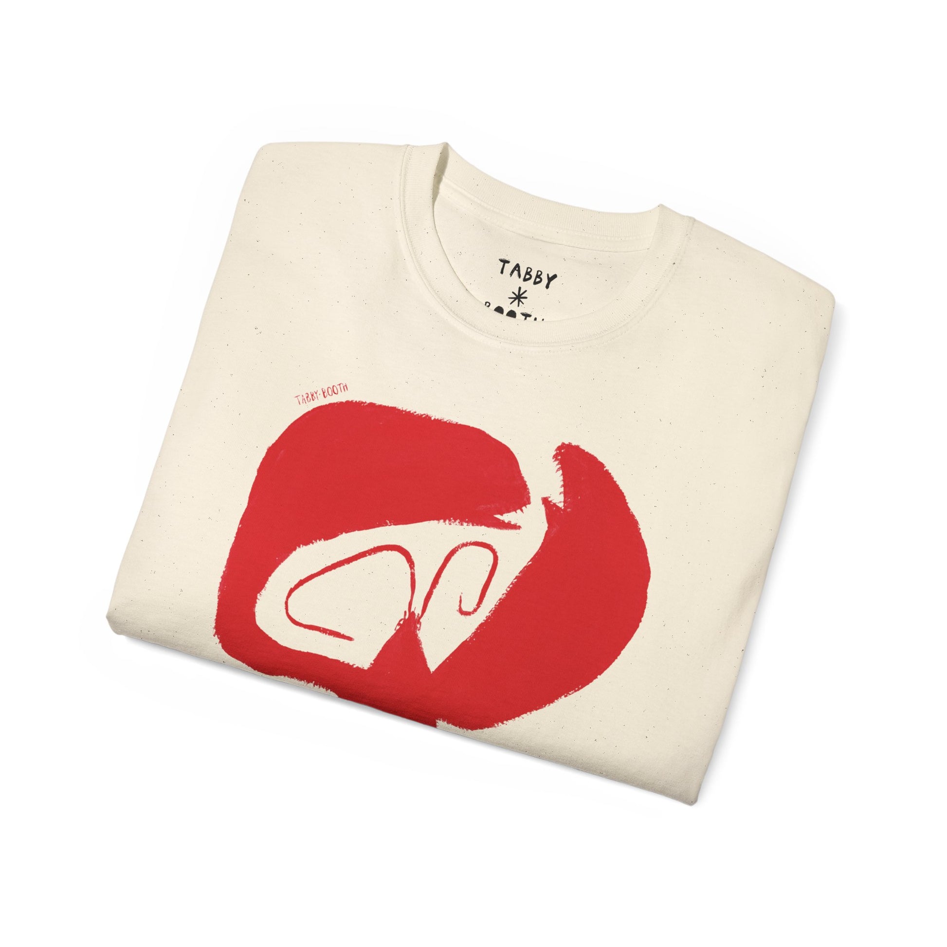 Unisex, sustainably-sourced 100% cotton tshirt with printed design by artist Tabby Booth. Classic fit with tapped shoulders, and a ribbed neckline. Off-white natural cotton colour and slightly faded design, for a vintage look.