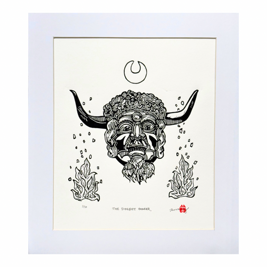 Original Linocut print ‘Dorset Ooser’ by local printmaker Tamsyn Swingler.