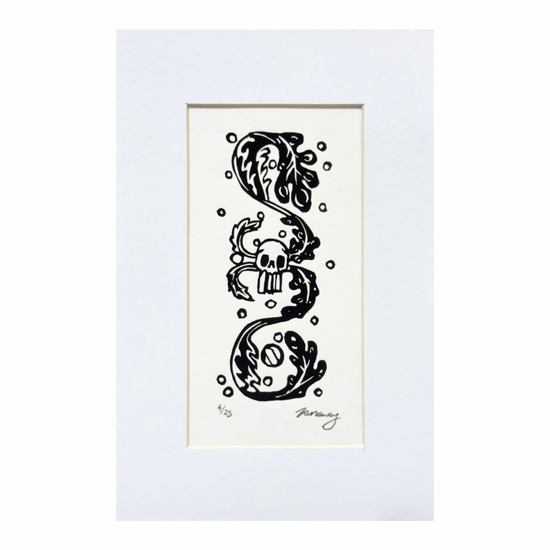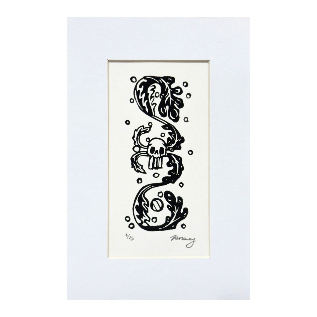 Original Linocut print ‘Skullyweed’ by local printmaker Tamsyn Swingler