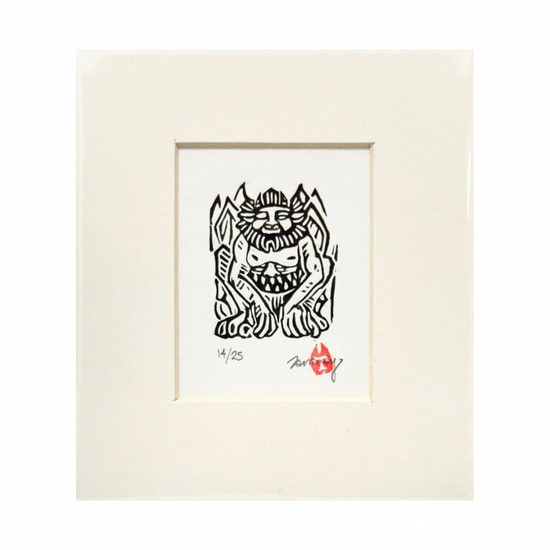 Original linocut print ‘Diablo’ by local printmaker Tamsyn Swingler