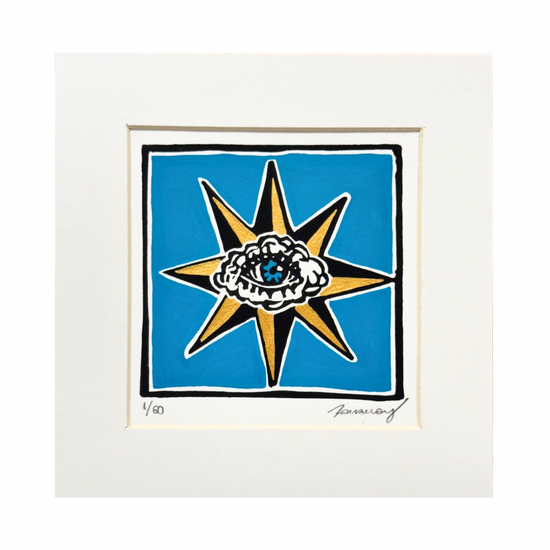 Original Linocut print ‘All Seeing’ by local printmaker Tamsyn Swingler
