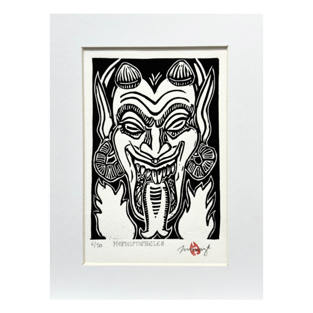 Original Linocut print ‘Mephistopheles’ by local printmaker Tamsyn Swingler.