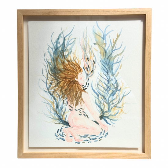 Original framed watercolour painting ‘Underwater Howl’ by local artist Tanya McBride. Watercolour, protected by glass.