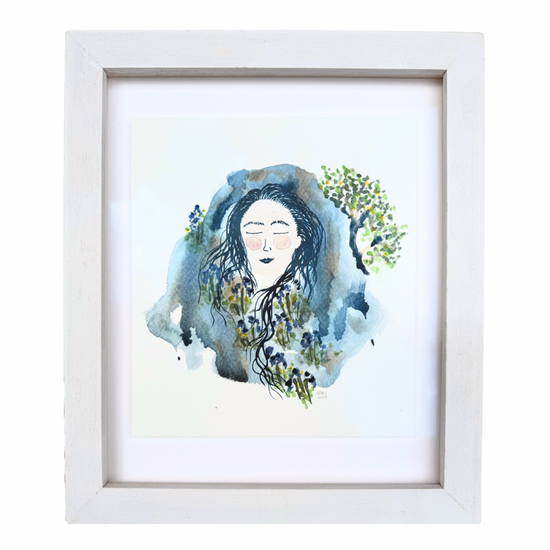 Original framed watercolour painting ‘Bluebell Belle’ by local artist Tanya McBride. Watercolour, protected by glass.