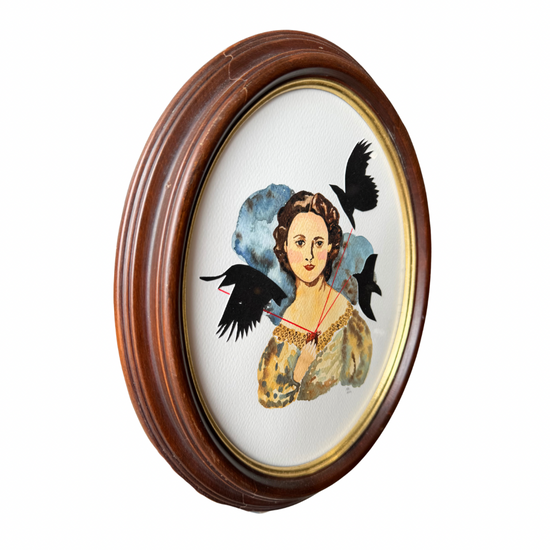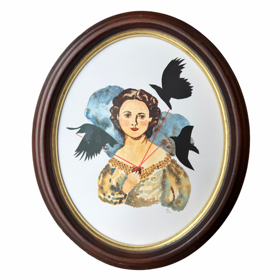 Original framed watercolour painting ‘Would The Crows Protect Her Heart If She Was To Fall In Love Again’ by local artist Tanya McBride. Watercolour and collage, protected by art glass.