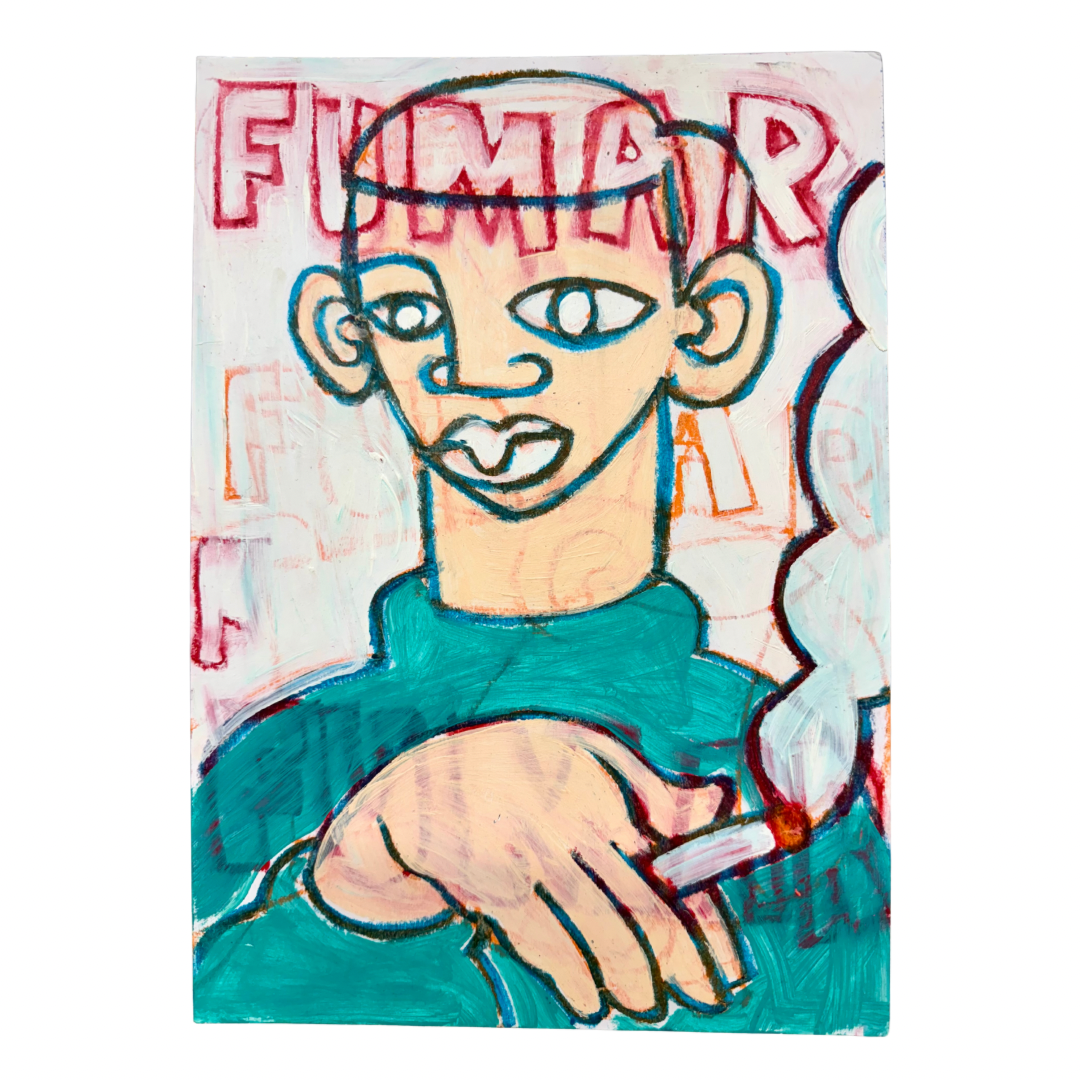 Original artwork ‘Fumar’ by Falmouth-based artist Vaughan Baker. Mixed media on board